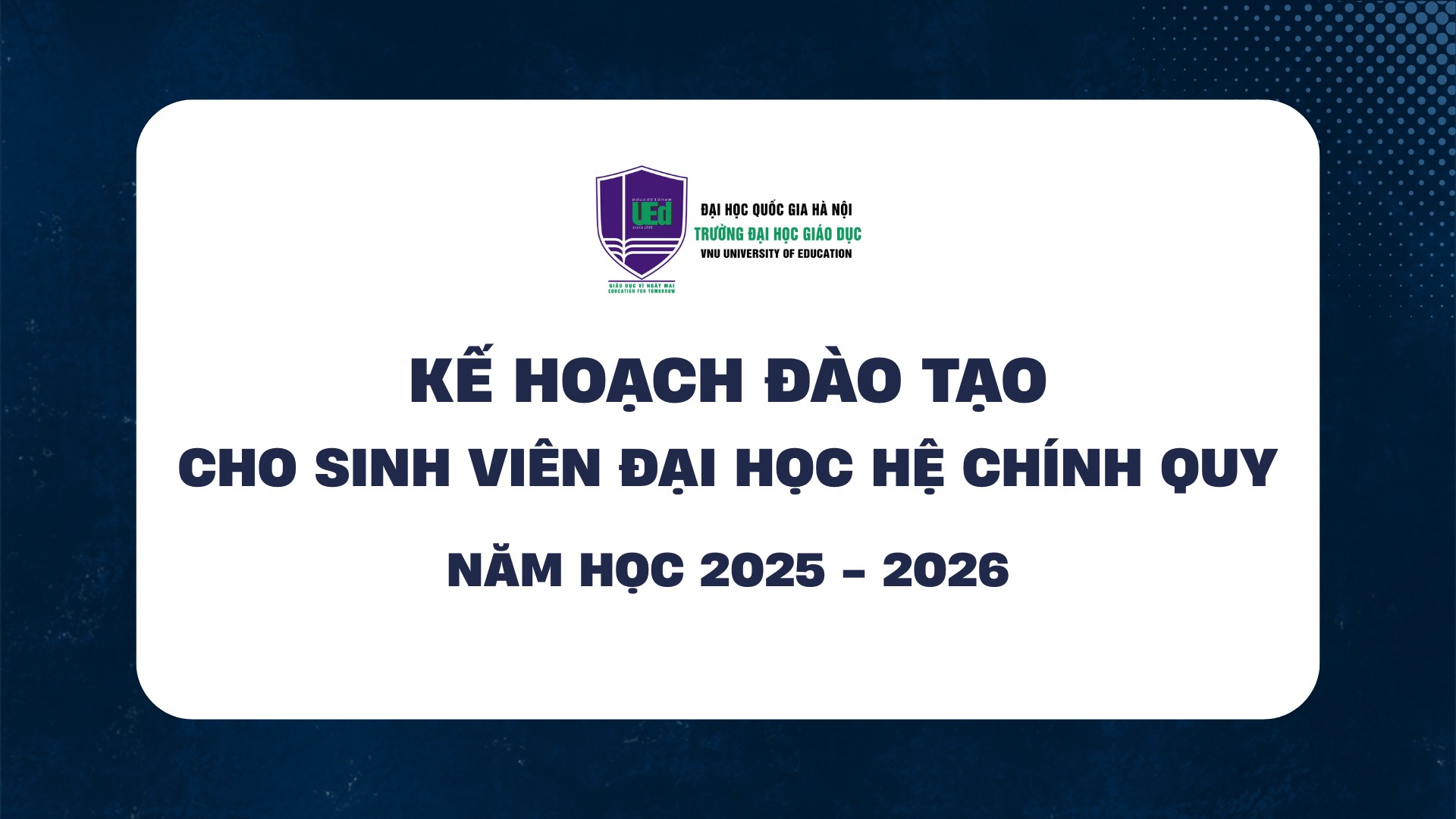 Trường Đại học Giáo dục, ĐHQGHN là cơ sở giáo dục đại học đào tạo và nghiên cứu chất lượng cao và trình độ cao trong khoa học và công nghệ giáo dục, ứng dụng cho đào tạo giáo viên, cán bộ quản lý và các nhóm nhân lực khác trong lĩnh vực giáo dục.