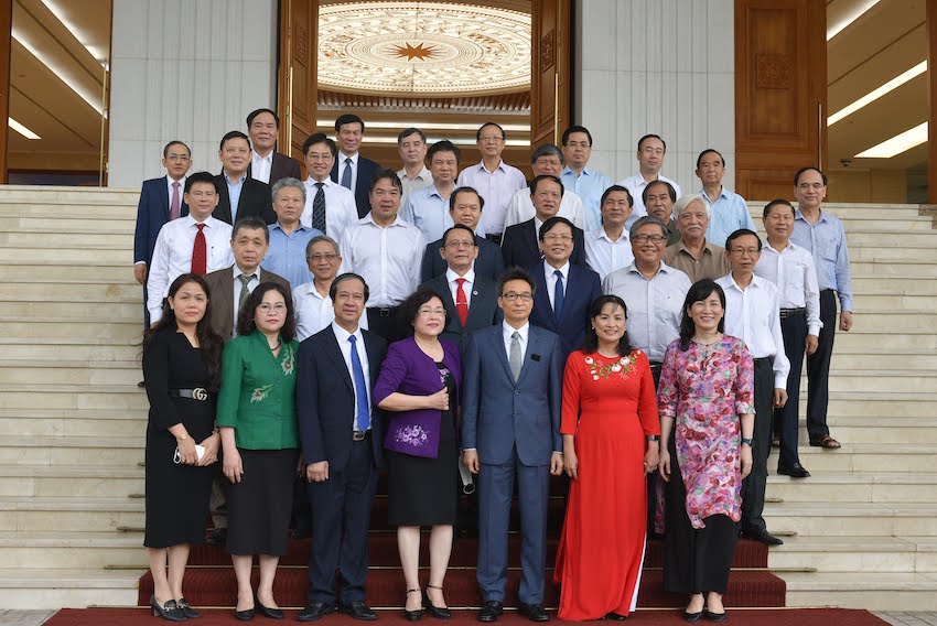 Các thành viên của Hội đồng Quốc gia Giáo dục và Phát triển nhân lực nhiệm kỳ 2016 - 2022, và nhiệm kỳ 2022-2026 cùng chụp ảnh lưu niệm