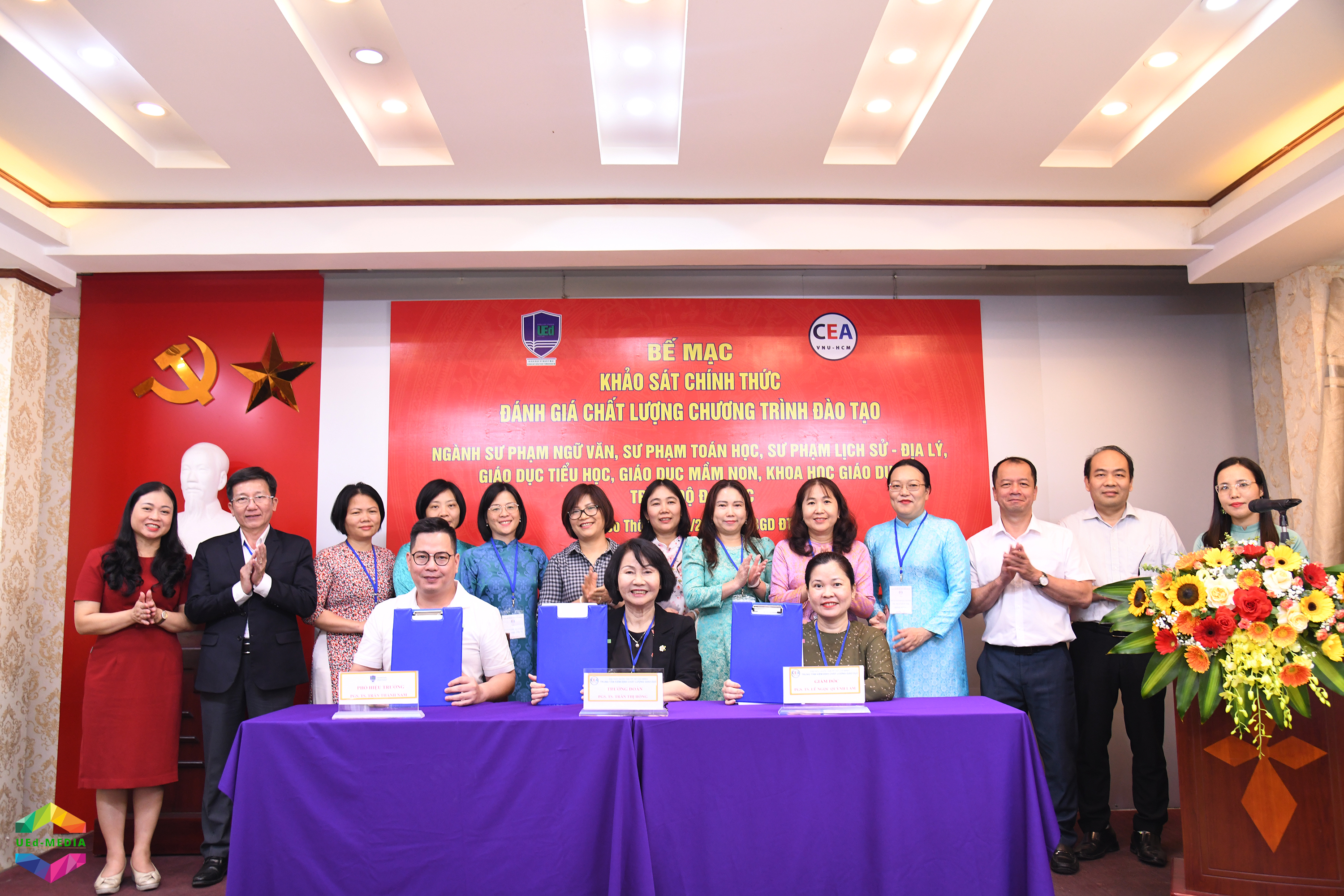 Kết thúc buổi lễ, trưởng đoàn Đánh giá ngoài, đại diện Ban Giám hiệu Trường Đại học Giáo dục và Giám đốc Trung tâm Kiểm định chất lượng giáo dục - Đại học Quốc gia TP. Hồ Chí Minh đã kí biên bản hoàn thành đợt khảo sát chính thức 06 chương trình đào tạo đại học Trường Đại học Giáo dục – ĐHQGHN.