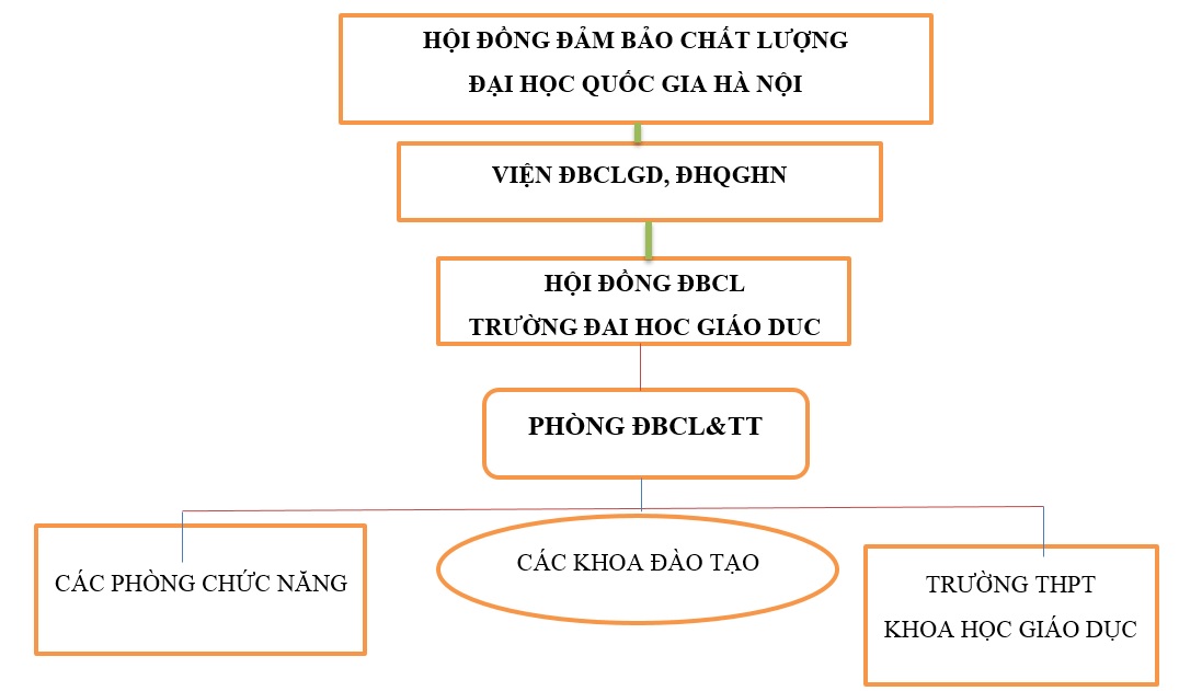 Hệ thống ĐBCL của trường ĐHGD được cấu trúc chặt chẽ, đảm bảo sự vận hành thống nhất từ cấp chỉ đạo từ ĐHQGHN, từ BGH nhà trường tới đơn vị cấu tạo nhỏ nhất là các tổ bộ môn. Cấu trúc hệ thống ĐBCL bên trong của trường ĐHGD được thực hiện theo mô hình phân cấp như sau: