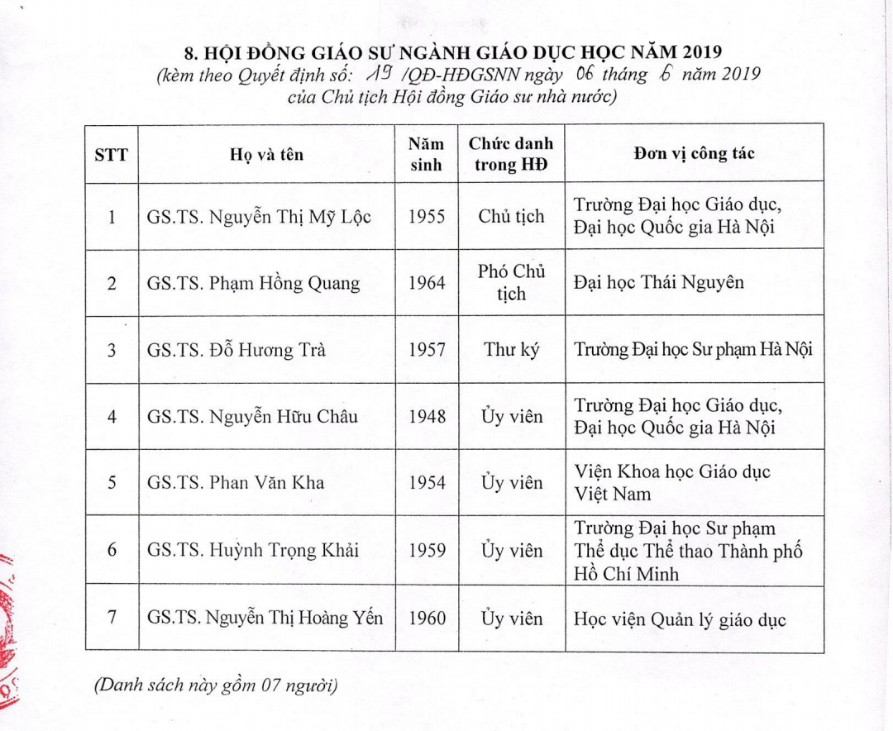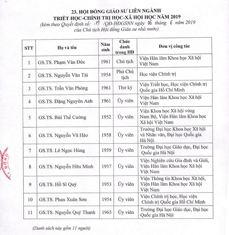 >>> Danh sách Ủy viên Hội đồng Giáo sư Nhà nước Download (tại đây)