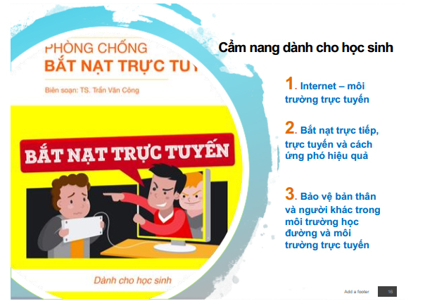 Tại Việt Nam, TS. Trần Văn Công cùng các cộng sự đã và đang xây dựng Chương trình phòng ngừa và can thiệp bắt nạt trực tuyến dựa vào trường học (viết tắt ATMi) dành cho độ tuổi từ 11 đến 18.