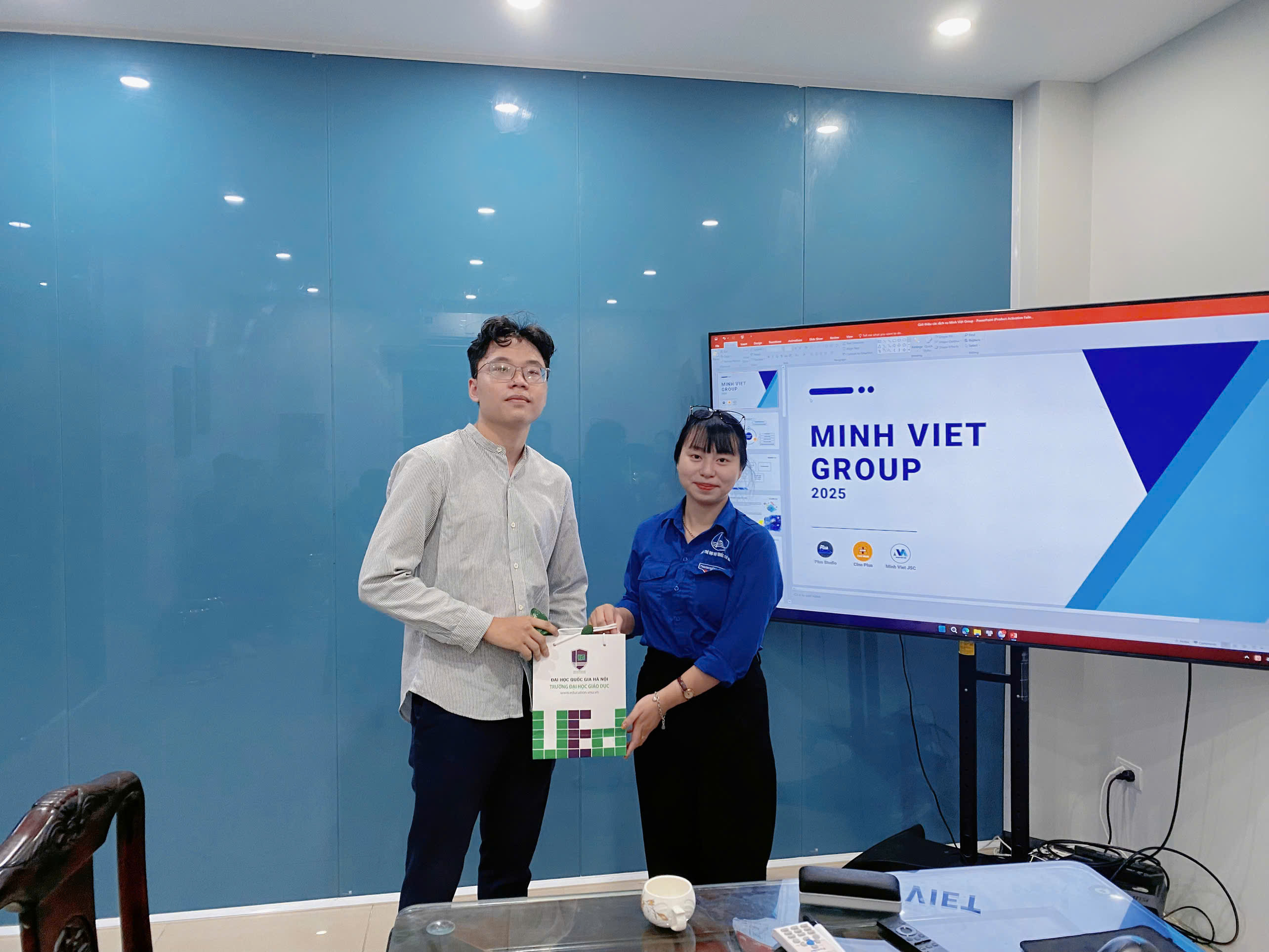 Mở đầu chương trình, đại diện Công ty Cổ phần Phát triển Công nghệ Minh Việt đã giới thiệu tổng quan về công ty, lĩnh vực hoạt động, các sản phẩm công nghệ nổi bật cũng như định hướng phát triển trong giai đoạn tới. Bên cạnh đó, ông Nguyễn Đức Minh – Leader Team Dự án chia sẻ về quy trình vận hành dự án, yêu cầu thực tế trong công việc, cũng như những kỹ năng cần thiết mà sinh viên cần trang bị nếu muốn tham gia vào các dự án công nghệ hiện nay. Thông tin được chia sẻ giúp sinh viên có cái nhìn thực tế về môi trường làm việc chuyên nghiệp, sáng tạo và năng động trong các lĩnh vực như truyền thông, thiết kế đồ họa và công nghệ số.