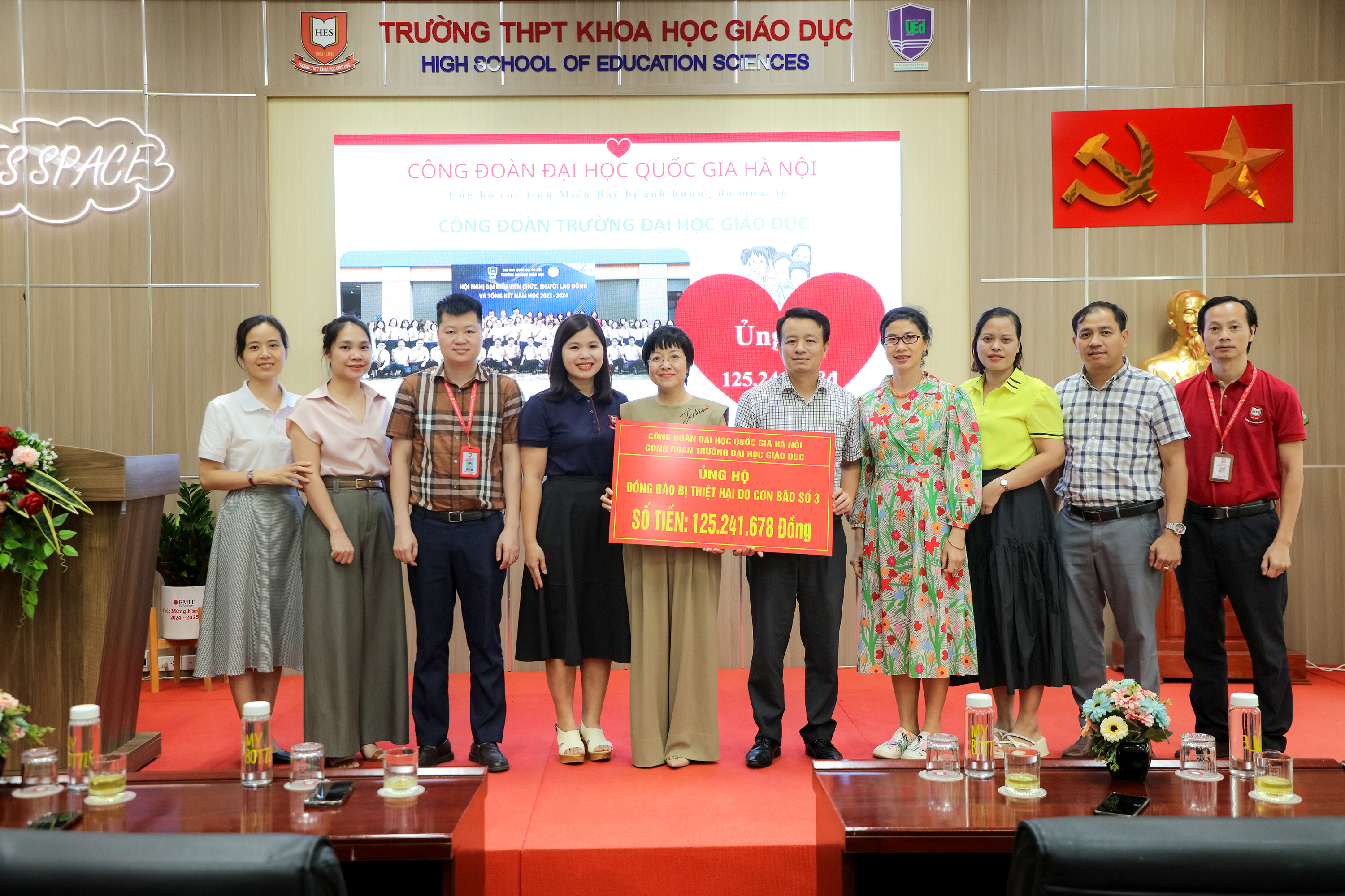 Thực hiện cuộc vận động của Công đoàn Đại học Quốc gia Hà Nội, Công đoàn giáo dục Việt Nam về việc ủng hộ hộ các tỉnh miền Bắc bị thiệt hại do cơn bão số 3 Yagi, bão, lũ vừa qua, Công đoàn Trường Đại học Giáo dục đã phát động quyên góp ủng hộ đồng bào chịu thiệt hại tới toàn thể cán bộ, viên chức, người lao động toàn Trường. Chỉ sau hơn một tuần phát động, với sự đồng lòng, tinh thần chia sẻ khó khăn của các cán bộ, giảng viên, giáo viên Công đoàn Trường Đại học Giáo dục đã quyên góp được số tiền là 125.241.678 đồng.
