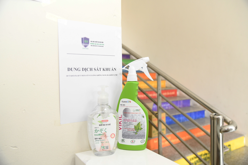 Ngoài hoạt động tổng vệ sinh khu vực giảng đường, Trường Đại học Giáo dục đã chuẩn bị: 2000 khẩu trang vải kháng khuẩn để phát miễn phí cho sinh viên; trang bị gần 100 chai nước sát khuẩn khô (trong đó có 40 chai do ĐHQGHN tài trợ) để tại các khu vực lớp học.