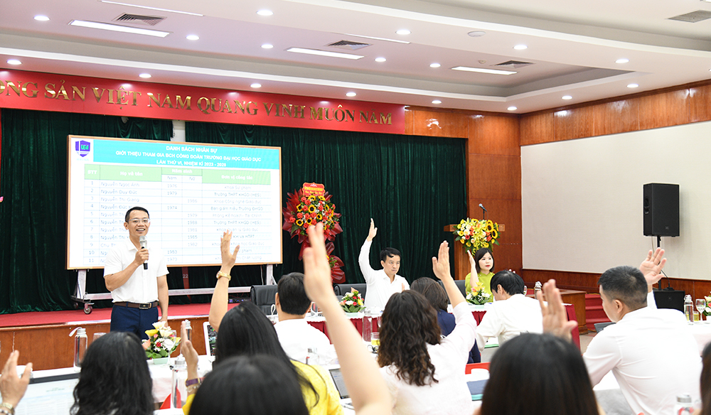 Với tinh thần làm việc trách nhiệm cao, tập trung, công bằng và minh bạch, Đại hội Đại hội đại biểu Công đoàn Trường Đại học Giáo dục lần thứ VI – Nhiệm kỳ 2023 – 2028 đã diễn ra thành công tốt đẹp. Đại hội đã thống nhất bầu ra 11 đồng chí vào Ban chấp hành nhiệm kỳ mới và bầu đoàn đại biểu đi dự Đại hội đại biểu Công đoàn Đại học Quốc gia Hà Nội.