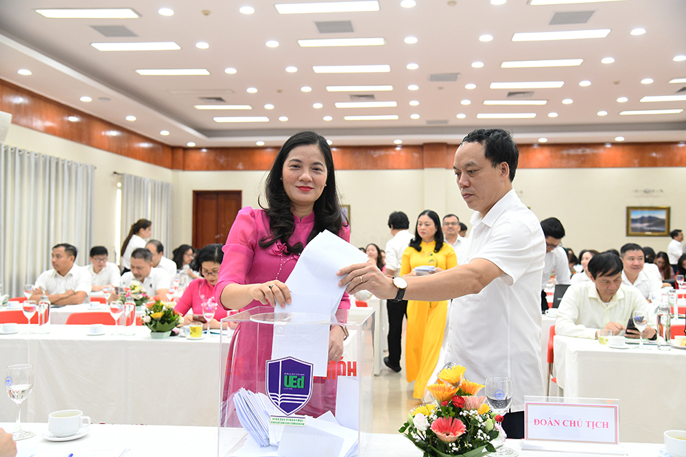 Các đại biểu tham dự đại hội tiến hành bỏ phiếu bầu Ban chấp hành Công đoàn Trường nhiệm kỳ 2023-2028