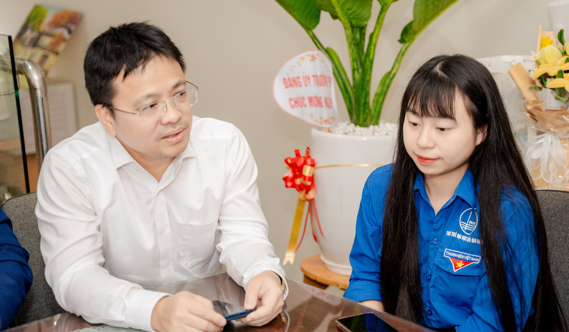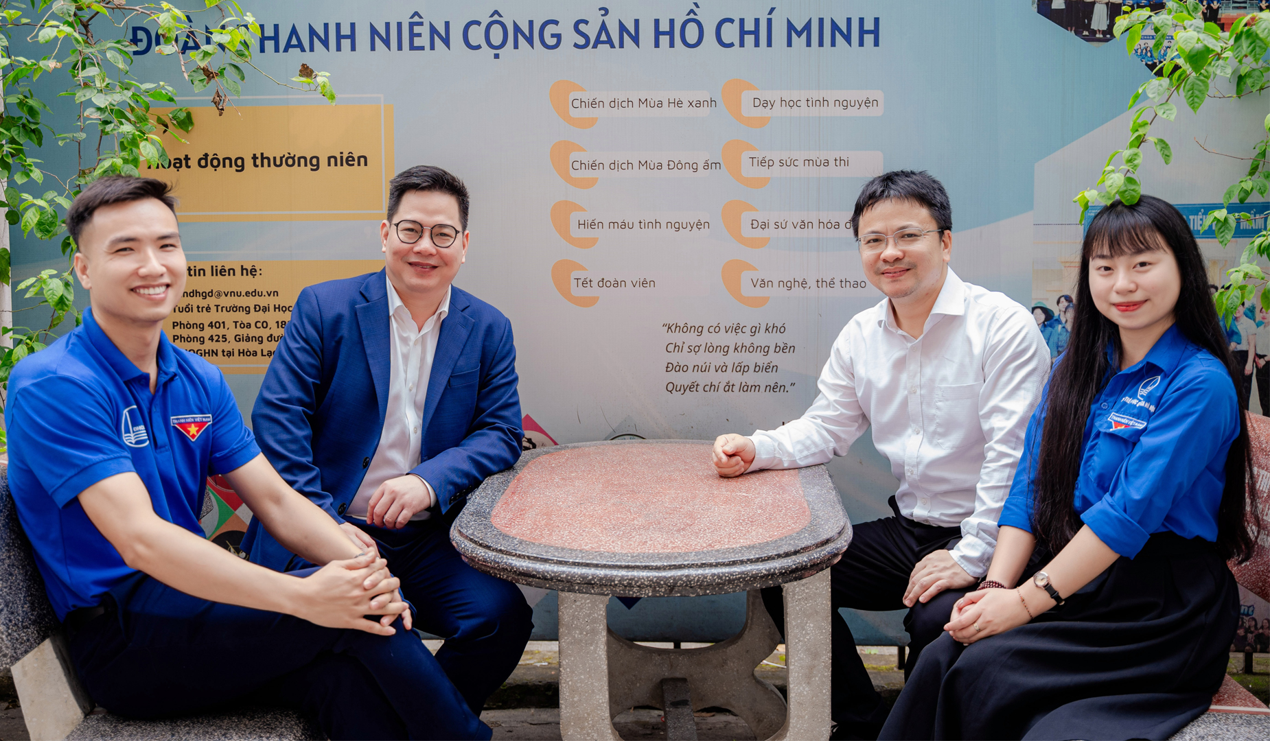 Về phía Đoàn Thanh niên Trường Đại học Giáo dục có đồng chí Nguyễn Văn Hưng – Bí thư Đoàn trường, đồng chí Bùi Thị Diệu Linh – Phó Bí thư Đoàn trường cùng các đồng chí trong Ban Chấp hành Đoàn Thanh niên trường.