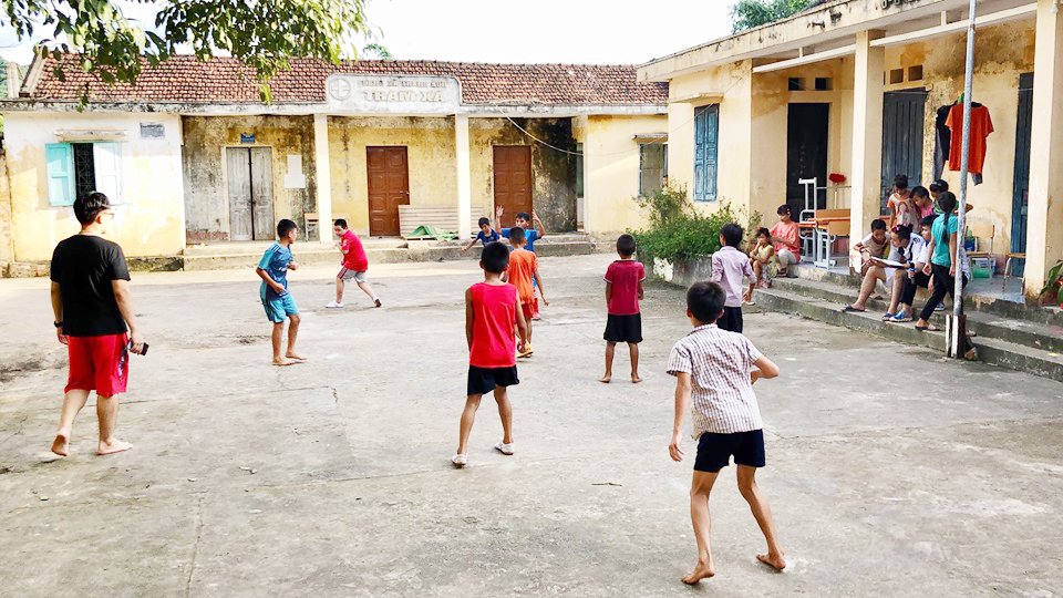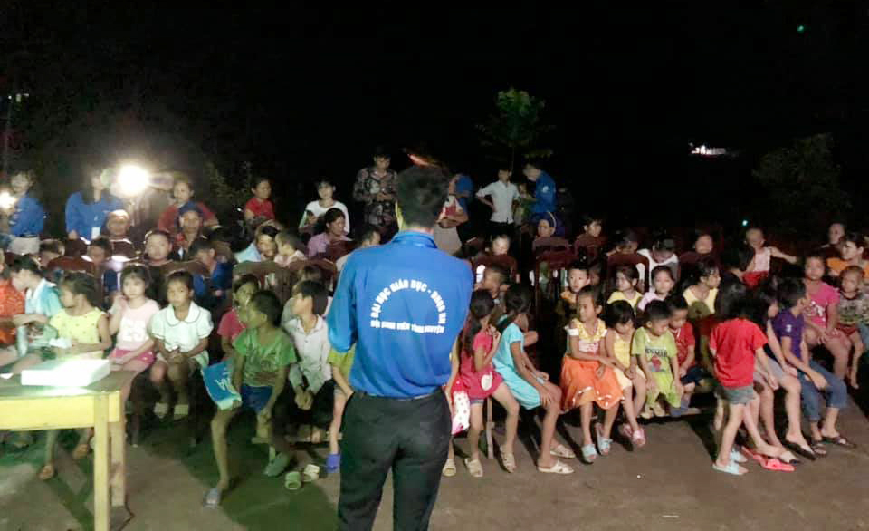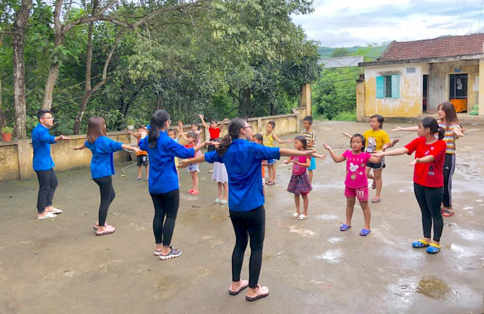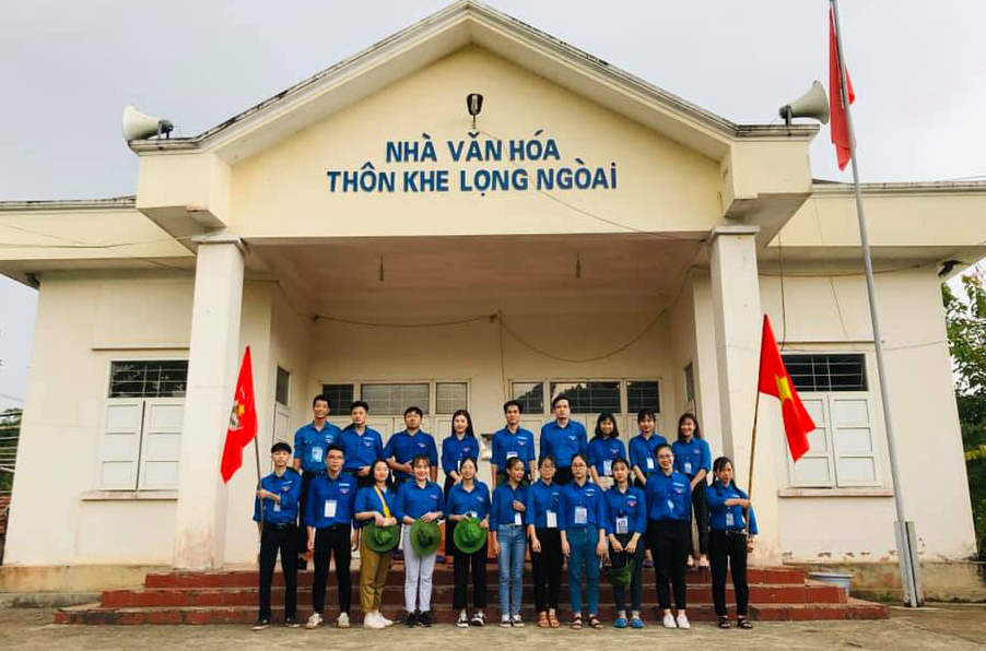 (Buổi ra quân đầu tiên của đội tình nguyện tại nhà văn hóa thôn Khe Lọng Ngoài)