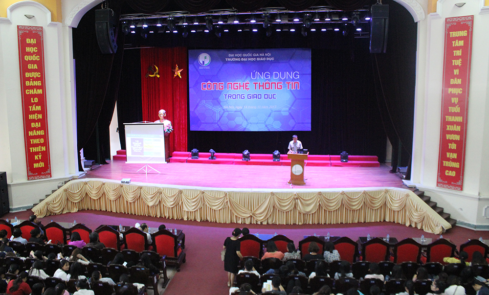 Ông Phạm Thúc Trương Lương – Phó Tổng Giám đốc Công ty Cổ phần Giáo dục Tinh Vân (TVE) – đã trình bày và chia sẻ các vấn đề về ứng dụng CNTT trong giáo dục với hơn 1000 cán bộ, giảng viên, nghiên cứu sinh, học viên và sinh viên Trường ĐH Giáo dục.