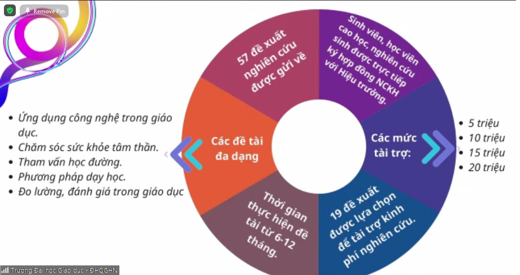 Chỉ tính riêng năm học 2020-2021, có 19/57 đề xuất đề tài của sinh viên, học viên, nghiên cứu sinh được lựa chọn đề nhận tài trợ kinh phí nghiên cứu