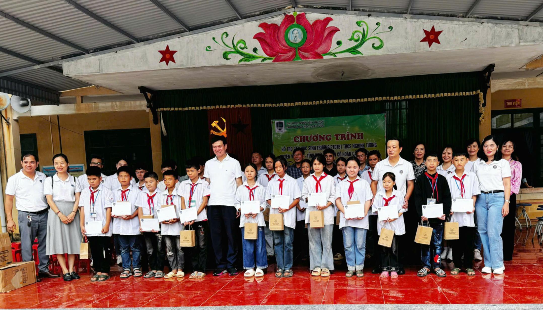 Theo đó, Công đoàn Trường Đại học Giáo dục đã trao tặng 20 triệu đồng cho 20 học sinh trường PTDTBT THCS Nghinh Tường, 50 thùng sữa cho học sinh hai điểm trường cùng vật dụng cá nhân, đồ dùng học tập khác.