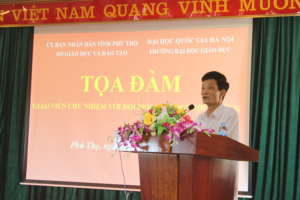 Phát biểu khai mạc buổi Tọa đàm, Phó Giám đốc Sở GD&ĐT tỉnh Phú Thọ - Nhà giáo ưu tú Phùng Quốc Lập đặc biệt nhấn mạnh vị trí, vai trò và tầm quan trọng của giáo viên chủ nhiệm trong các trường học. Trong đó, việc bồi dưỡng và tự bồi dưỡng của giáo viên chủ nhiệm trong công tác tham vấn học đường, tư vấn hướng nghiệp, công tác tuyên truyền trong trường học là vô cùng cần thiết và đây cũng là vấn đề lãnh đạo Sở rất quan tâm.