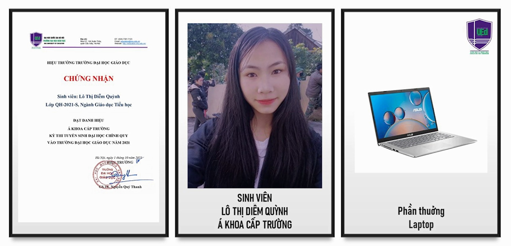Phạm Thị Huệ - tân sinh viên khoá QH-2021-S, ngành Giáo dục Tiểu học - Thủ Khoa Trường năm 2021