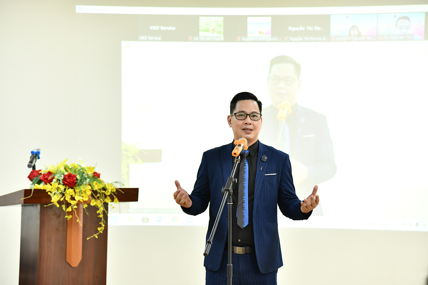 Hiệu trưởng GS.TS. Nguyễn Quý Thanh phát biểu khai trương Phòng Đa năng giáo dục nghệ thuật. Hiệu trưởng mong rằng, các cán bộ, quản lý, giảng viên và sinh viên sẽ khai thác tối đa để phòng Đa năng giáo dục nghệ thuật “luôn sáng đèn” và đi vào hoạt động hiệu quả