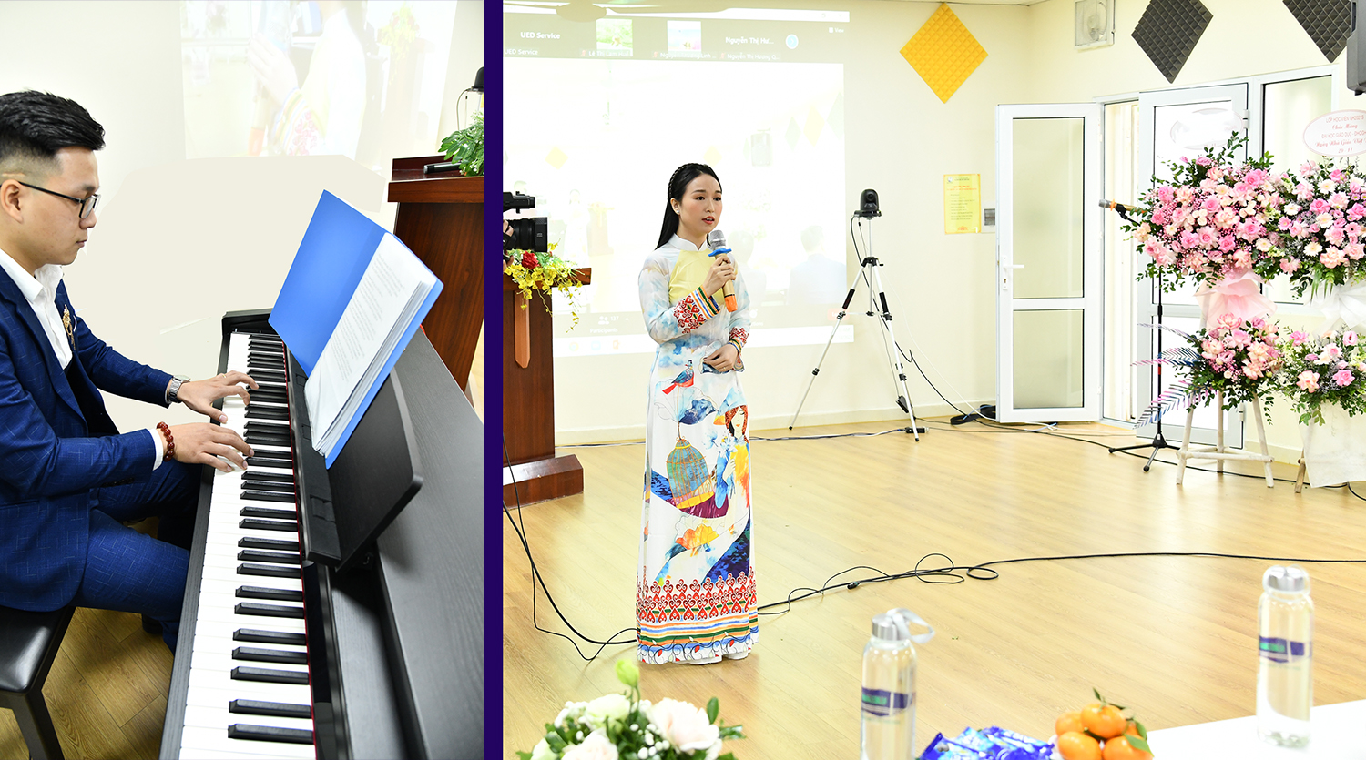 Tiết mục đàn và hát ngẫu hứng do giảng viên Khoa Các khoa học Giáo dục trình bày