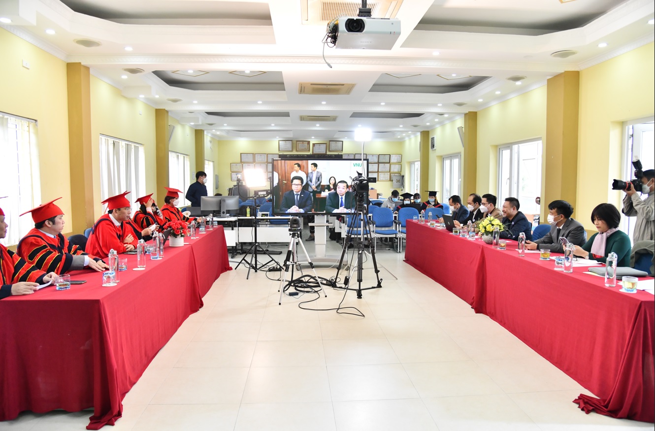 Lễ Khai giảng Sau đại học và Trao bằng Thạc sĩ, Tiến sĩ năm 2021 được tổ chức theo hình thức kết hợp trực tiếp và trực tuyến với sự hỗ trợ của các thiết bị công nghệ.