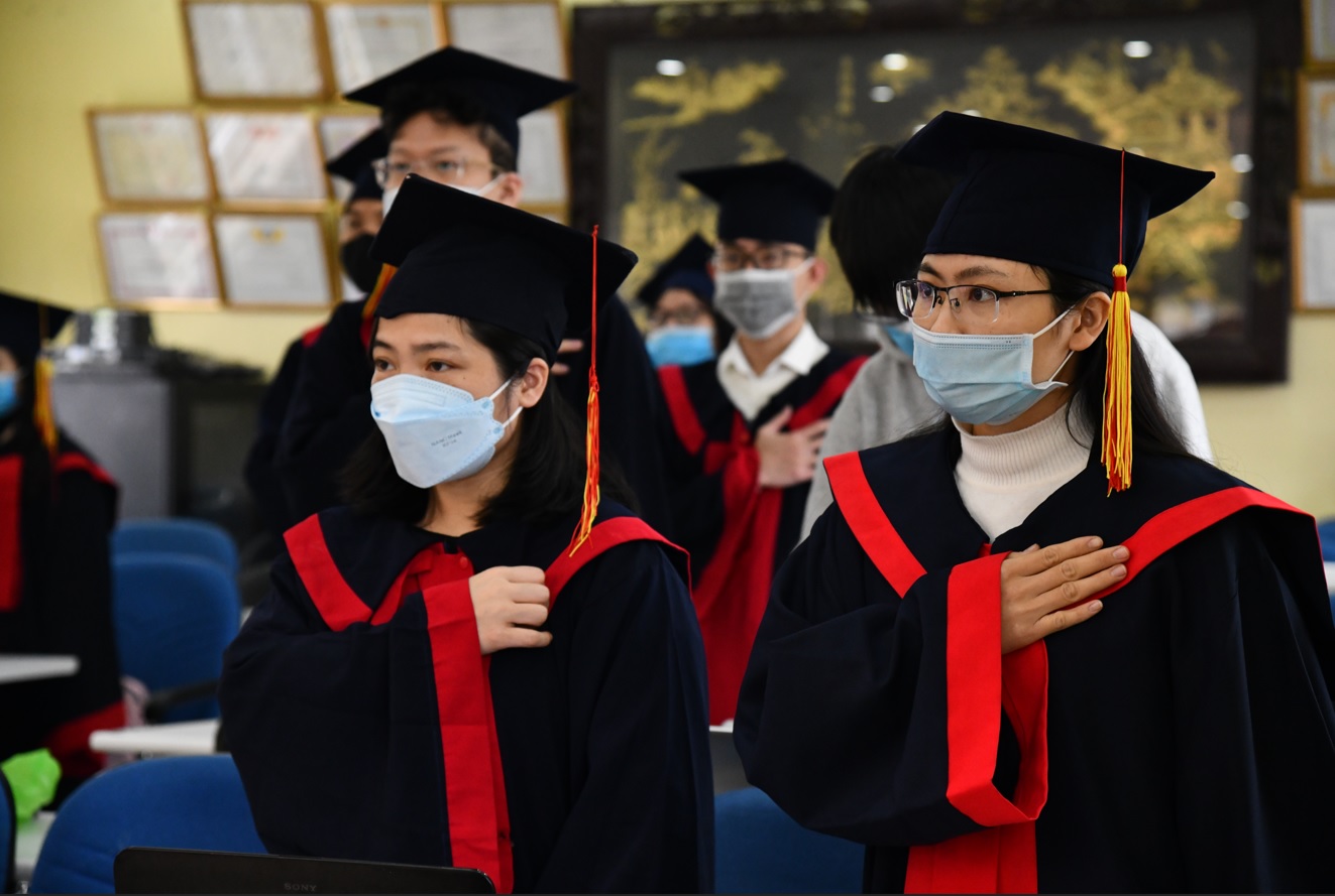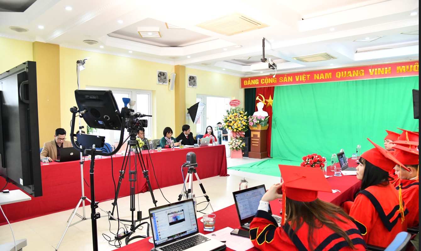 Do ảnh hưởng của dịch bệnh Covid-19, nhiều tân Thạc sĩ đã dự buổi Lễ nhận bằng theo hình thức trực tuyến