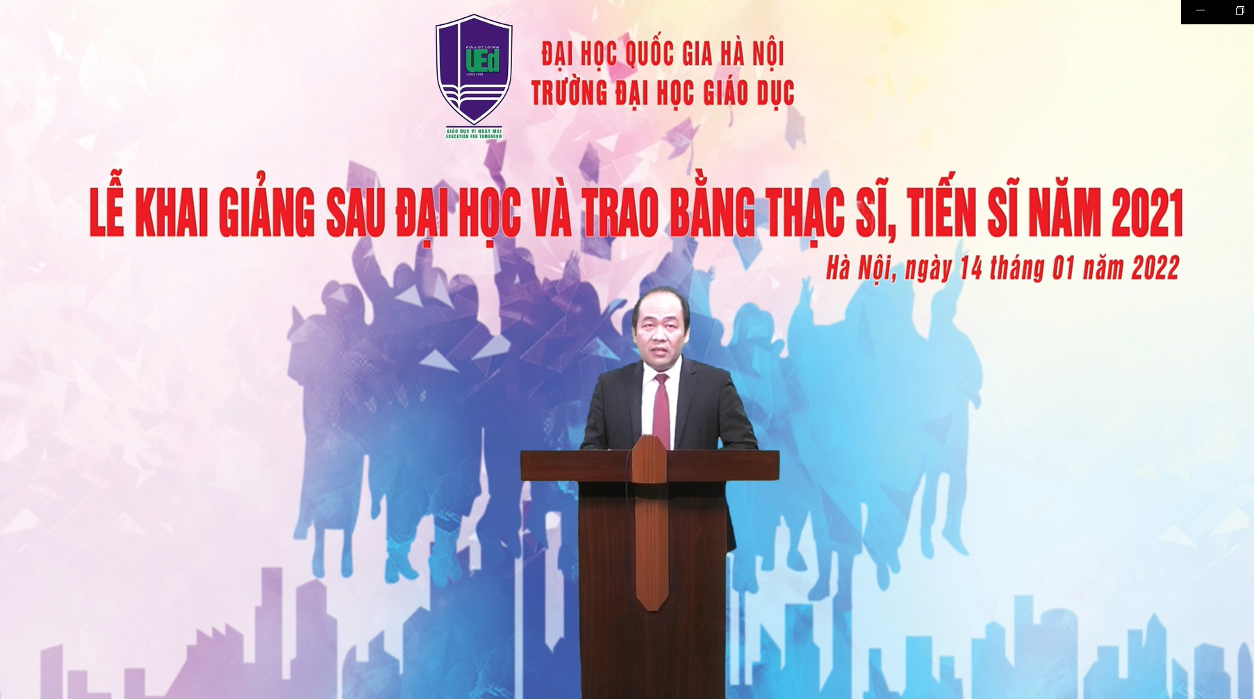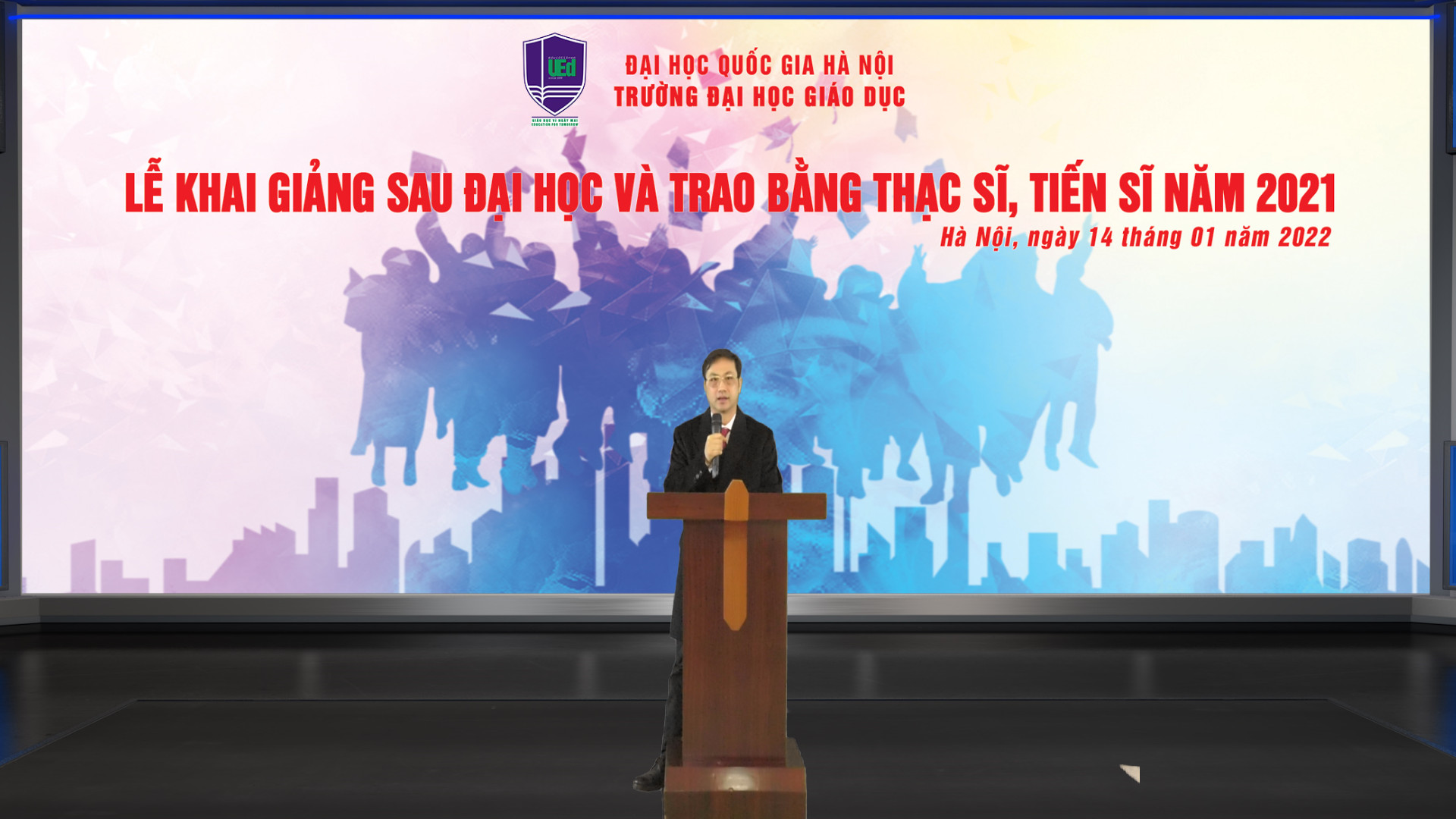 Lễ Khai giảng Sau đại học và Trao bằng Thạc sĩ, Tiến sĩ năm 2021 được tổ chức theo hình thức kết hợp trực tiếp và trực tuyến.