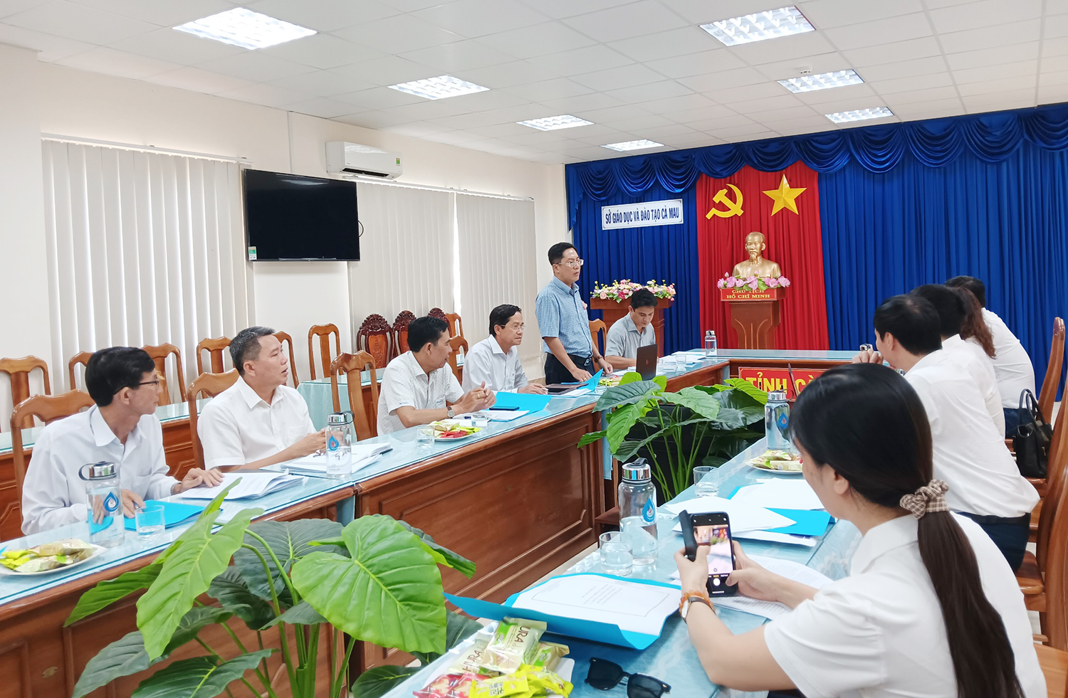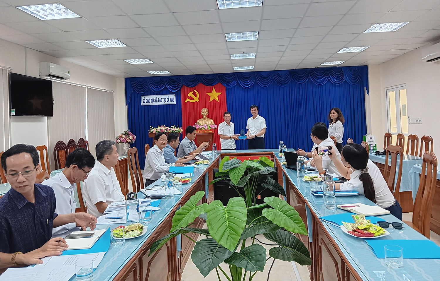 Tiếp đoàn công tác của Trường Đại học Giáo dục có Giám đốc Sở Giáo dục và Đào tạo tỉnh Cà Mau ông Nguyễn Thành Luận cùng các lãnh đạo sở.
