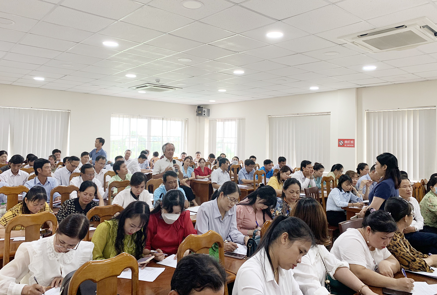 Hơn 100 cán bộ quản lý và giáo viên tỉnh đã thực hiện khảo sát theo hình thức phỏng vấn, nội dung chủ yếu tập trung vào công tác quản lý, tổ chức và triển khai công tác kiểm tra đánh giá trong giáo dục phổ thông của tỉnh.