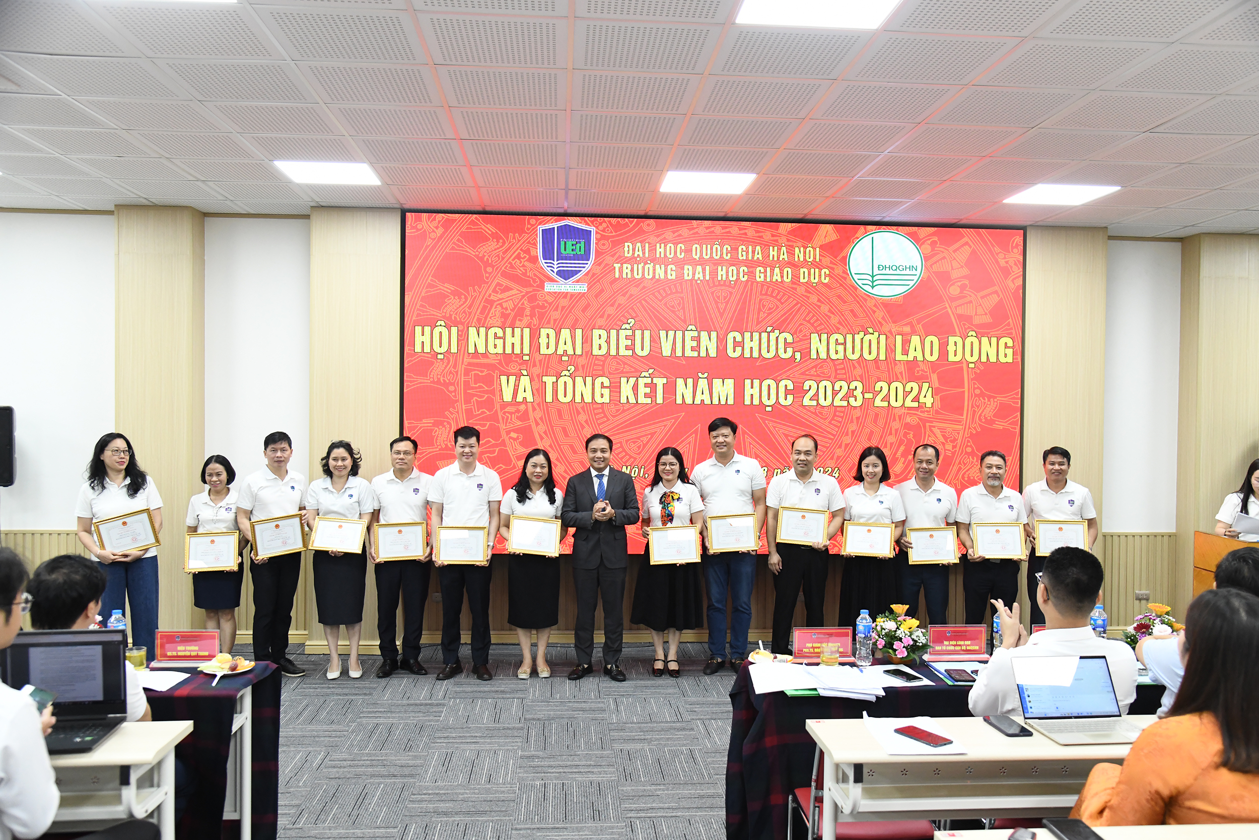 Năm học 2023-2024, Trường Đại học Giáo dục cũng quan tâm tới công tác thi đua khen thưởng: Bên cạnh các hình thức khen thưởng thường xuyên, định kì, Nhà trường đặc biệt chú trọng tới việc khen thưởng đột xuất, khen thưởng cho cán bộ, giảng viên có thành tích xuất sắc trong công tác, nghiên cứu khoa học nhằm ghi nhận những đóng góp của các cán bộ, giảng viên trong suốt năm học.