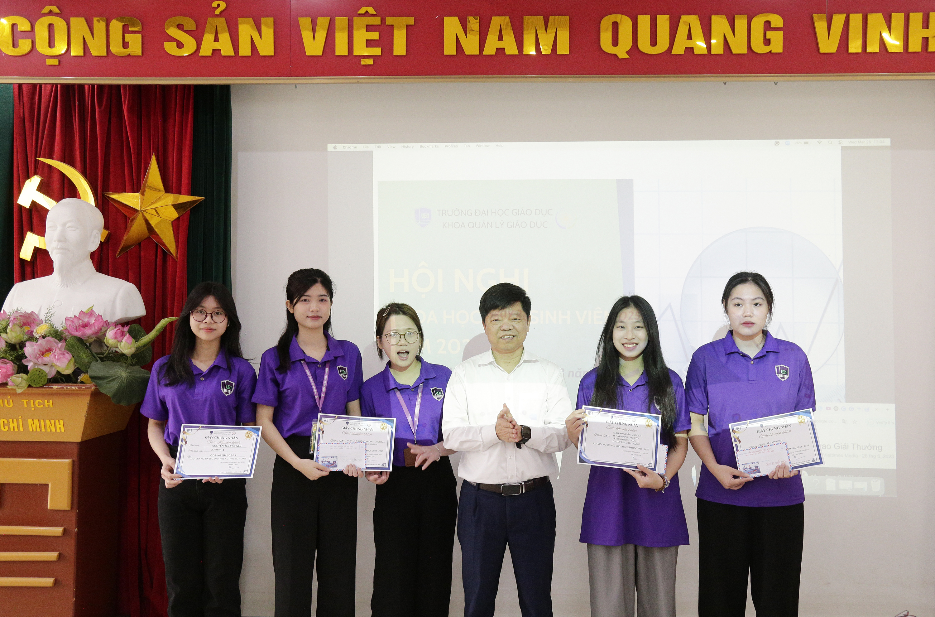- Nhóm nghiên cứu: Lê Phương Uyên, Lê Hà Phương (QH-2023-S Quản trị trường học N1); Lê Hồng Phúc, Đào Việt Khánh (QH-2023-I\CQ-S-AE K68-AE – Viện Công nghệ Hàng không Vũ trụ) - Nhóm nghiên cứu: Nguyễn Thị Hồng Nhung, Bàn Thị Thanh Lam (QH-2024-S GD3.N6) - Nhóm nghiên cứu: Lê Hà Phương, Lê Phương Uyên (QH-2023-S Quản trị trường học N1) - Sinh viên: Nguyễn Thị Yến Nhi (QH-2024-S GD3.N6) |