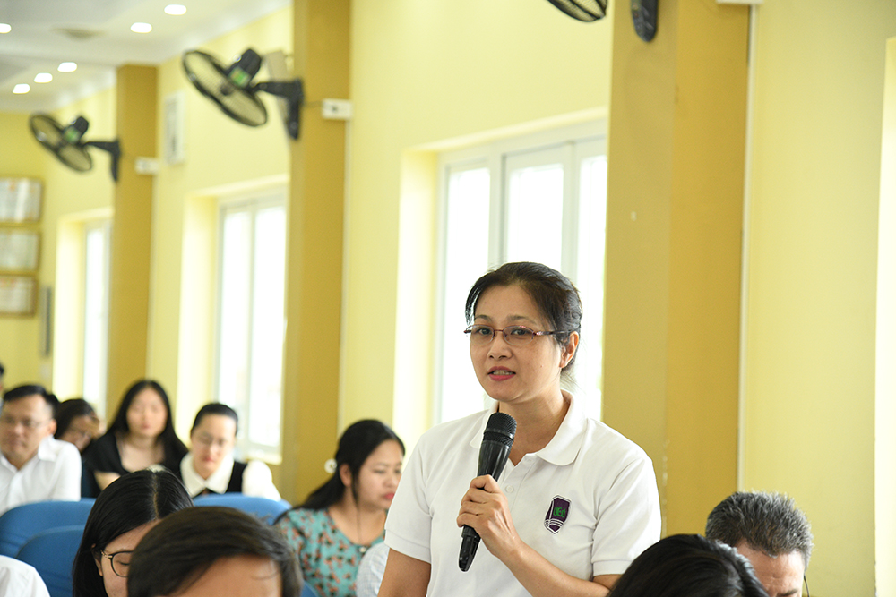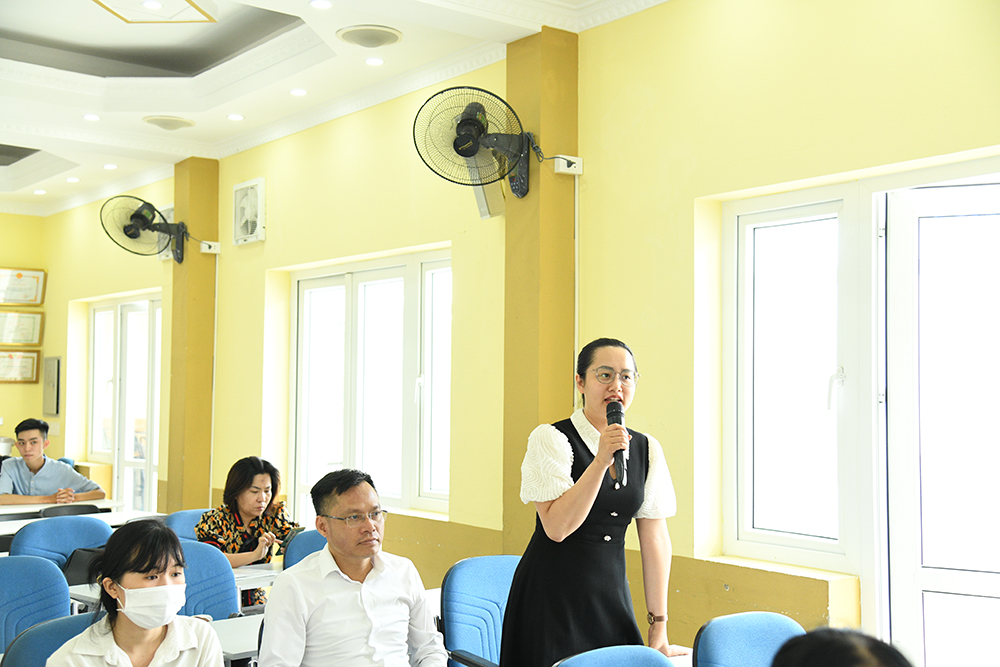 PGS.TS. Nguyễn Thuý Nga - Phó Chủ nhiệm phụ trách Khoa Quản trị Chất lượng góp ý tại Hội nghị. Khoa Quản trị Chất lượng cũng là Khoa có sinh viên là đồng tác giả của 3 bài báo nghiên cứu khoa học thuộc hệ thống danh mục tạp chí ISI/SCOPUS.