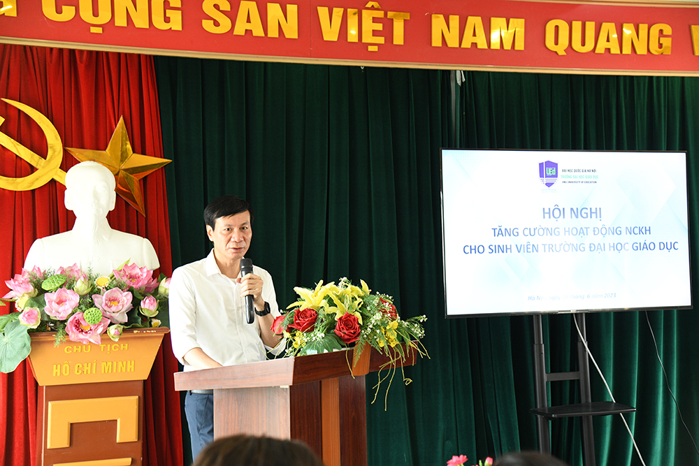 Tại Hội nghị, Phó Trưởng phòng Khoa học và Hợp tác phát triển TS. Nguyễn Thu Hường đã trình bày Báo cáo tổng hợp tình hình nghiên cứu khoa học của sinh viên Trường Đại học Giáo dục trong 5 năm gần đây và Công bố kết quả khảo sát ý kiến của sinh viên về nhu cầu, nguyện vọng tham gia các hoạt động nghiên cứu.