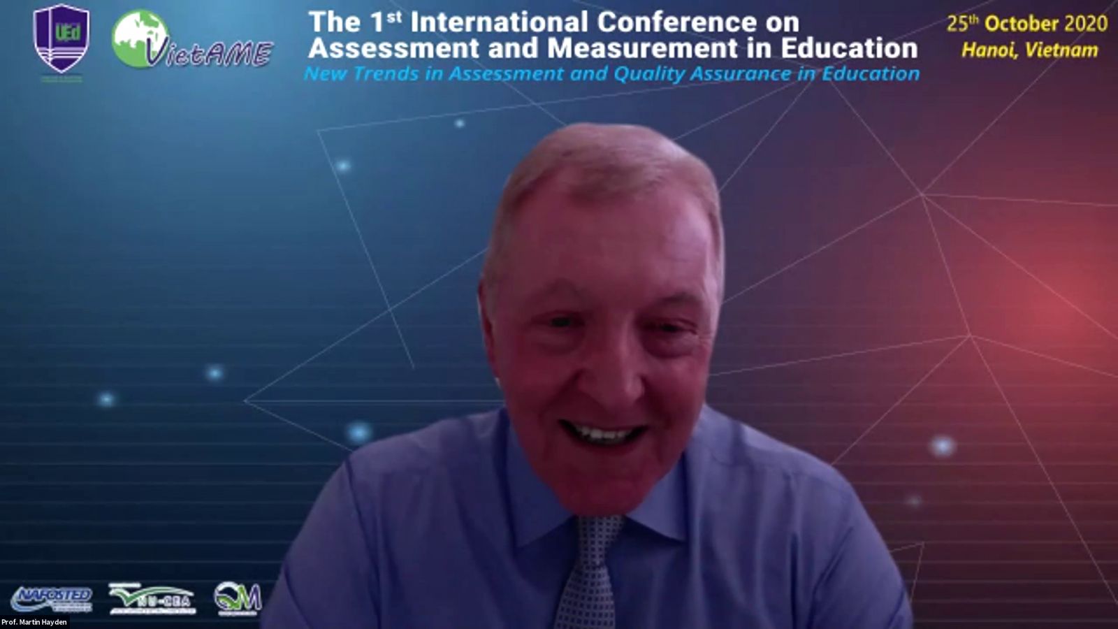 Trình bày ở phiên toàn thể, diễn giả chính Giáo sư Martin Hayden từ Trường Đại học Southern Cross, Australia với nghiên cứu có tiêu đề “Student Assessment Practices in Australia” đã đi sâu về các phương pháp tiếp cận khác nhau để đánh giá học sinh ở Úc và xác định một số xu hướng quan trọng trong đánh giá hiện nay. Bài trình bày cung cấp một phác thảo ngắn gọn về các đặc điểm chính của hệ thống giáo dục Úc có liên quan đến ngữ cảnh để người nghe có thể hiểu được cách đánh giá học sinh ở Úc ra sao. Sau đó, các cách tiếp cận khác nhau được triển khai để đánh giá học sinh phổ thông, giáo dục nghề nghiệp (VET), và giáo dục đại học sẽ được giải thích một cách xúc tích. Ba xu hướng đáng chú ý trong thực hành đánh giá học sinh ở Úc cũng được thảo luận. Bài trình bày gợi mở những kinh nghiệm đáng lưu ý cho các nhà nghiên cứu giáo dục tại Việt Nam trong bối cảnh đánh giá quá trình ngày càng được quan tâm hơn.