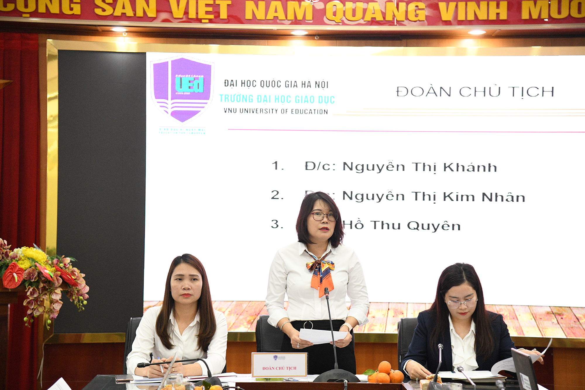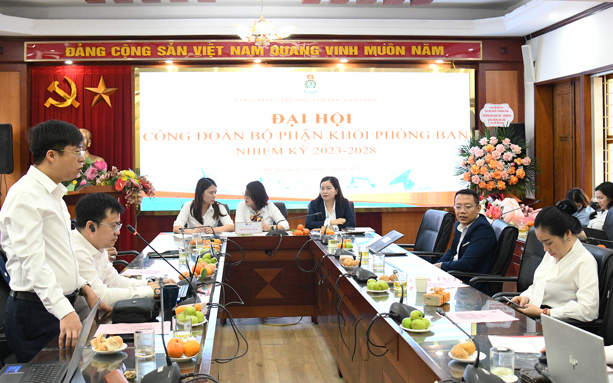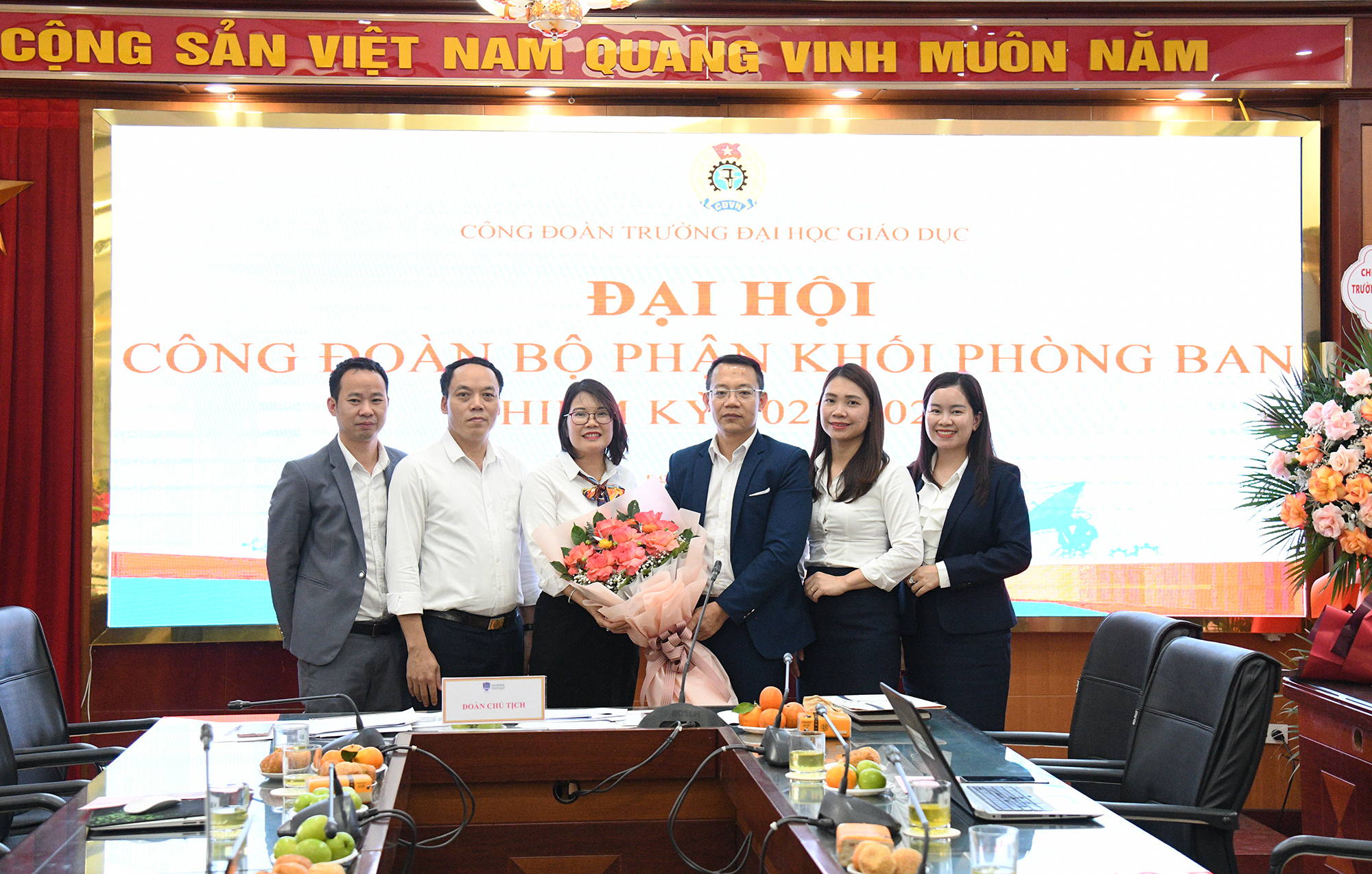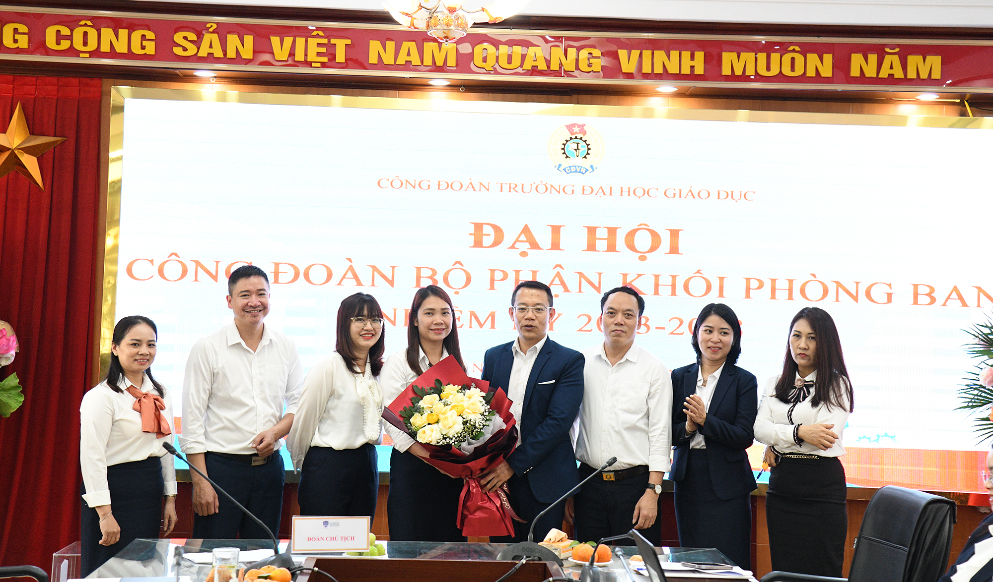 Công đoàn Trường Đại học Giáo dục tặng hoa chúc mừng Ban chấp hành Công đoàn Bộ phận Khối phòng ban nhiệm kỳ 2017-2023 đã hoàn thành xuất sắc nhiệm vụ trong nhiệm kỳ hoạt động