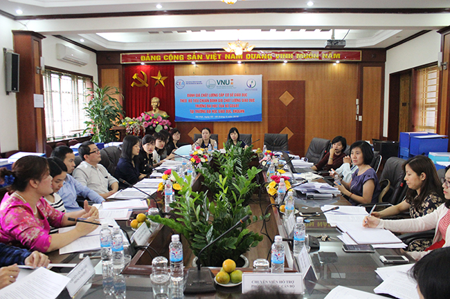 Ngay sau phiên làm việc toàn thể ngày 5/4, Đoàn chuyên gia đánh giá đã bắt đầu phiên làm việc với Hội đồng Tự đánh giá của Trường ĐHGD, phỏng vấn Ban Giám hiệu và lãnh đạo các phòng, ban chức năng. Đoàn cũng đã phỏng vấn lãnh đạo các khoa, đại diện lãnh đạo Đảng ủy, đoàn thể (Công đoàn, Đoàn thanh niên) và các trung tâm trực thuộc; Tham quan cơ sở vật chất của Trường: thư viện, phòng y tế, các trung tâm, các phòng ban, khoa và bộ môn trực thuộc.