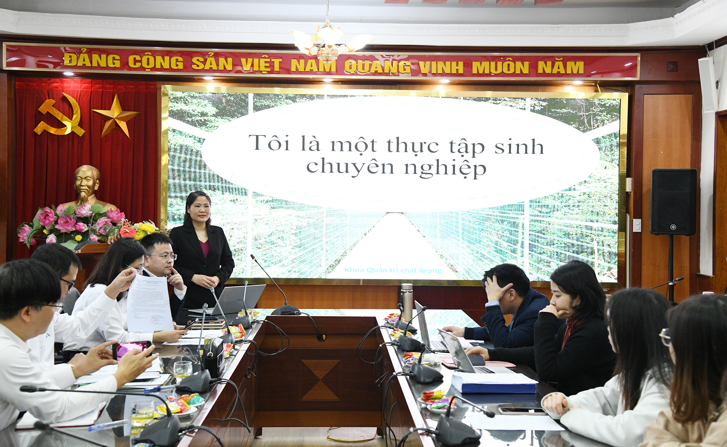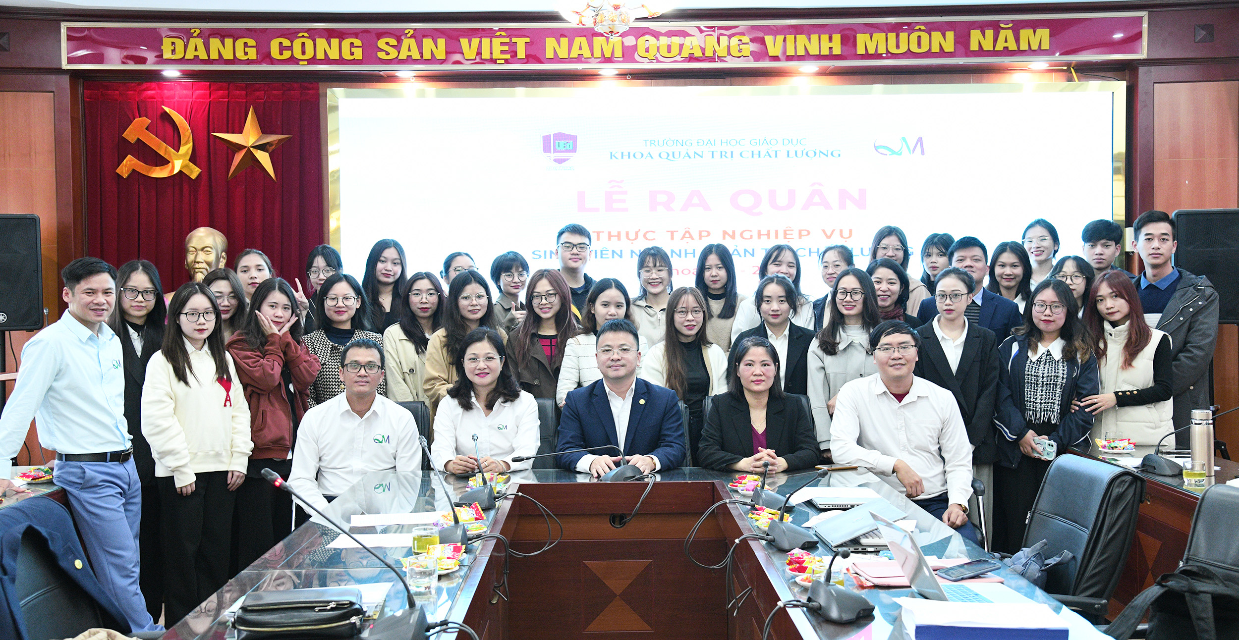 Đoàn thực tập nghiệp vụ cho sinh viên khoa Quản trị chất lượng được thực hiện dưới sự chỉ đạo trực tiếp của PGS.TS. Nguyễn Thuý Nga – Phó Chủ nhiệm Khoa; Các giảng viên TS. Nguyễn Anh Tuấn, TS. Phạm Văn Hoằng làm trưởng đoàn.