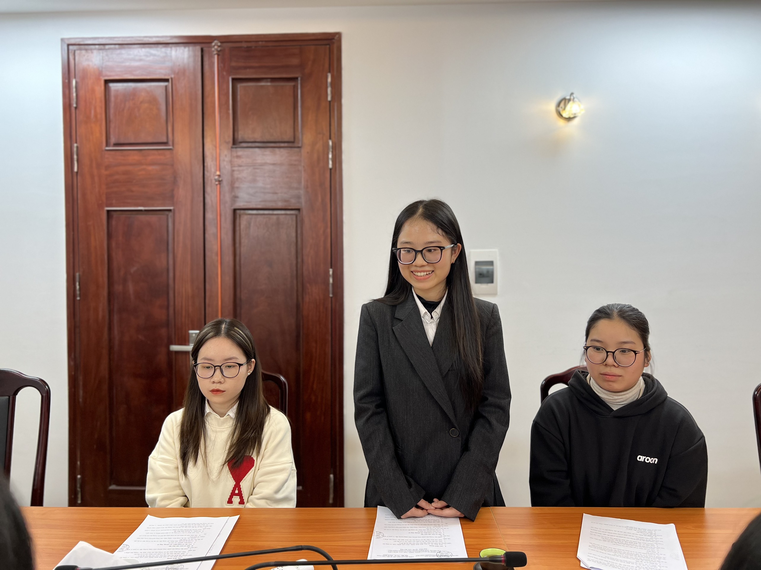 Thu Trang đại diện sinh viên cam kết thực hiện tốt các quy định thực tập nghiệp vụ