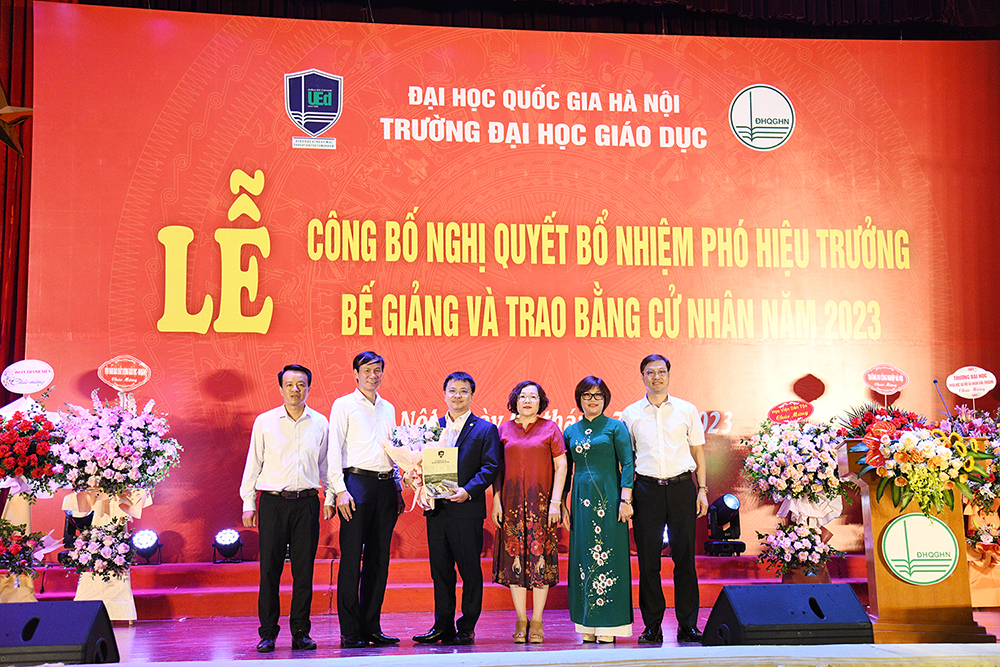 Tại Lễ Công bố nghị quyết bổ nhiệm Phó Hiệu trưởng, Chủ tịch Hội đồng Trường Đại học Giáo dục PGS.TS. Nguyễn Thị Hương thay mặt Hội đồng trường, Đảng uỷ và Ban Giám hiệu đã trao Nghị quyết bổ nhiệm cho Tân Phó Hiệu trưởng PGS.TS. Lê Thái Hưng.