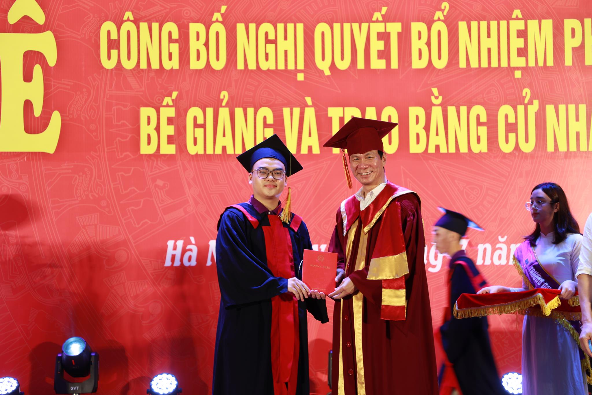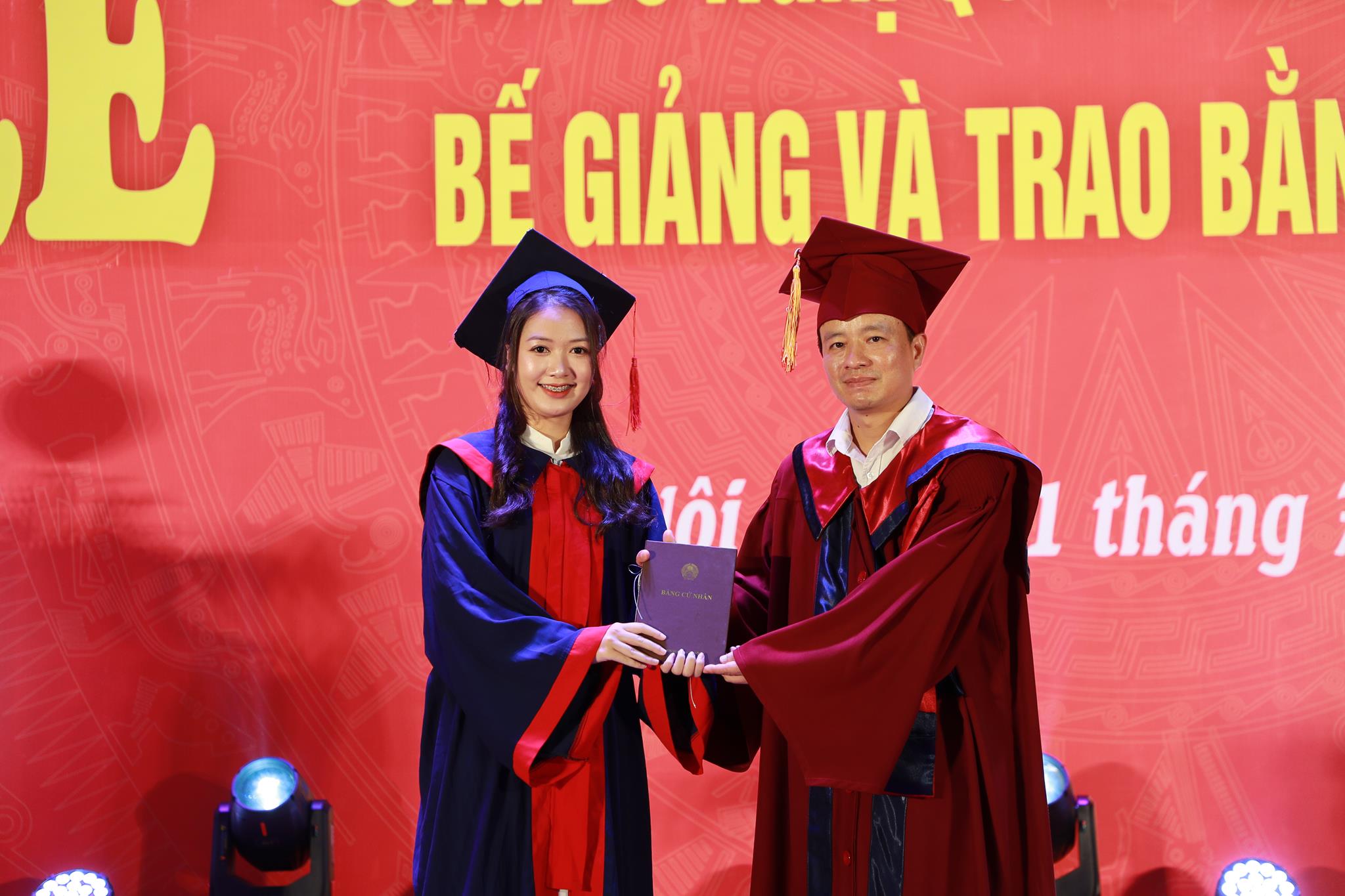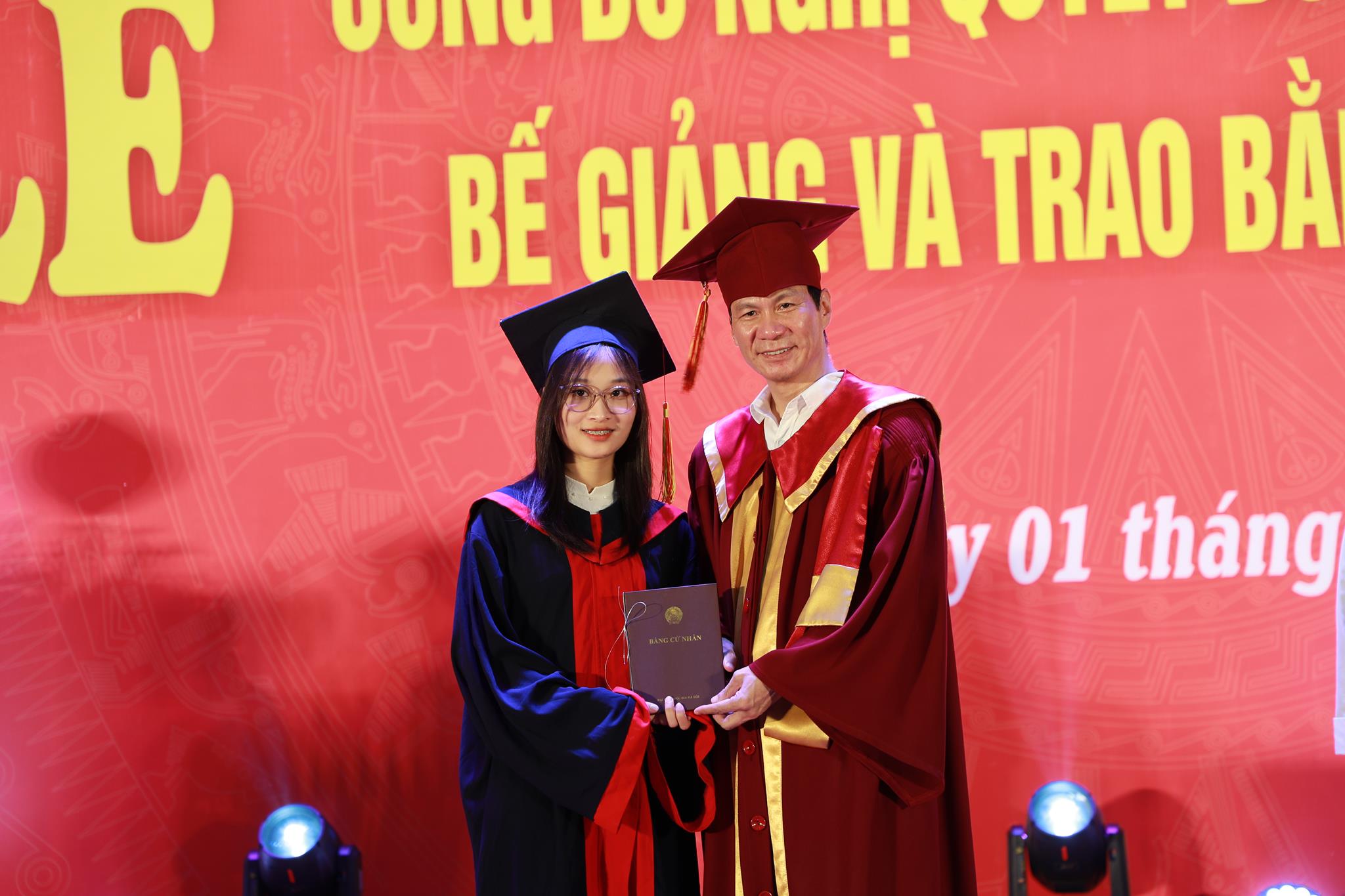 Hiệu trưởng GS.TS. Nguyễn Quý Thanh trao bằng tốt nghiệp cho sinh viên
