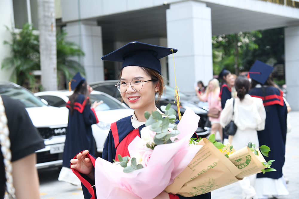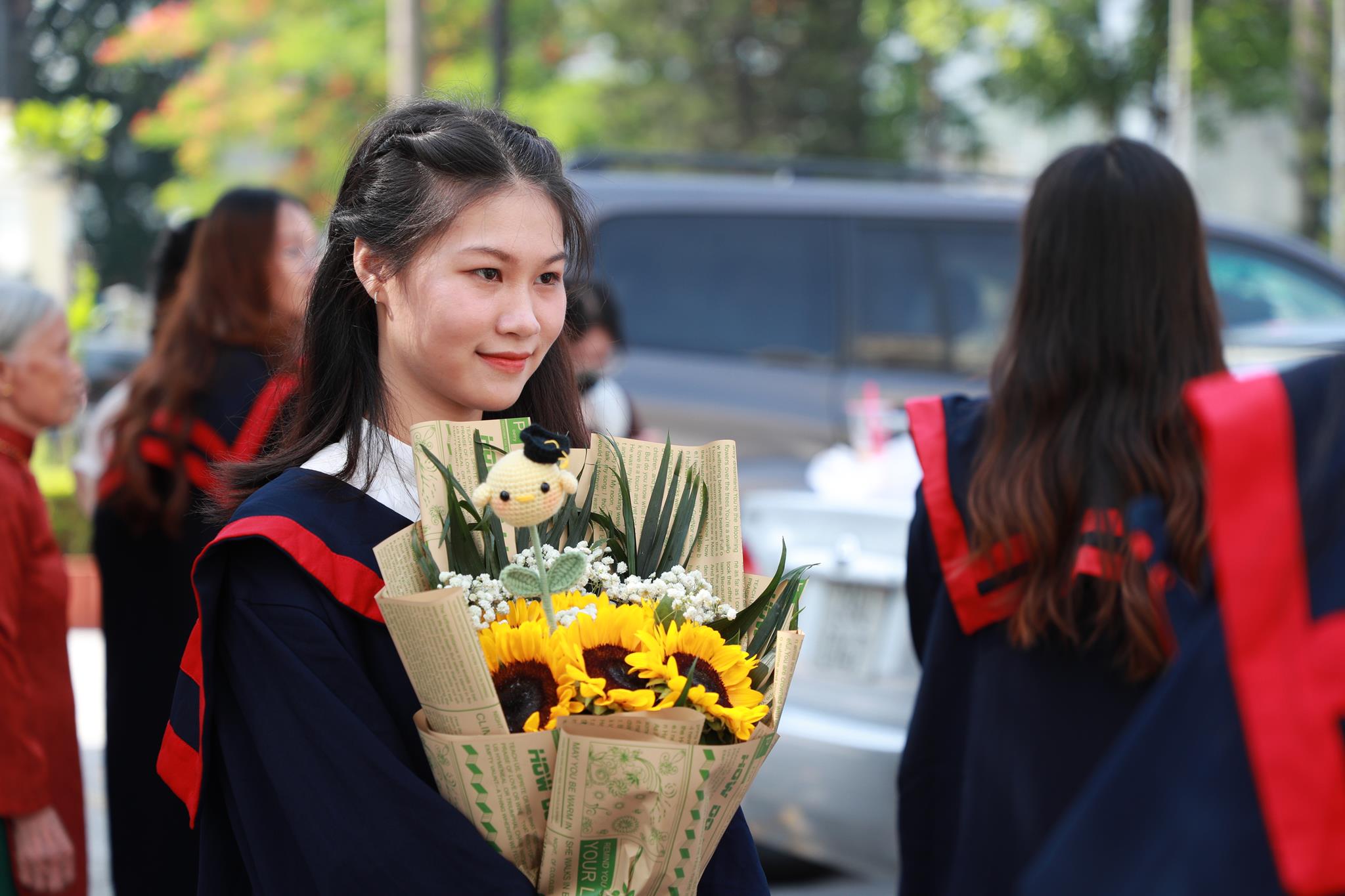 Đại diện cho các Tân cử nhân nhận bằng trong buổi Lễ Bế giảng và Trao bằng, Em Đàm Quỳnh Trang sinh viên khóa QH-2019-S Sư phạm Toán học đã tặng hoa và gửi lời tri ân sâu sắc tới toàn thể Ban Giám hiệu, Ban Chủ nhiệm Khoa, các cán bộ, giảng viên Trường ĐH Giáo dục.