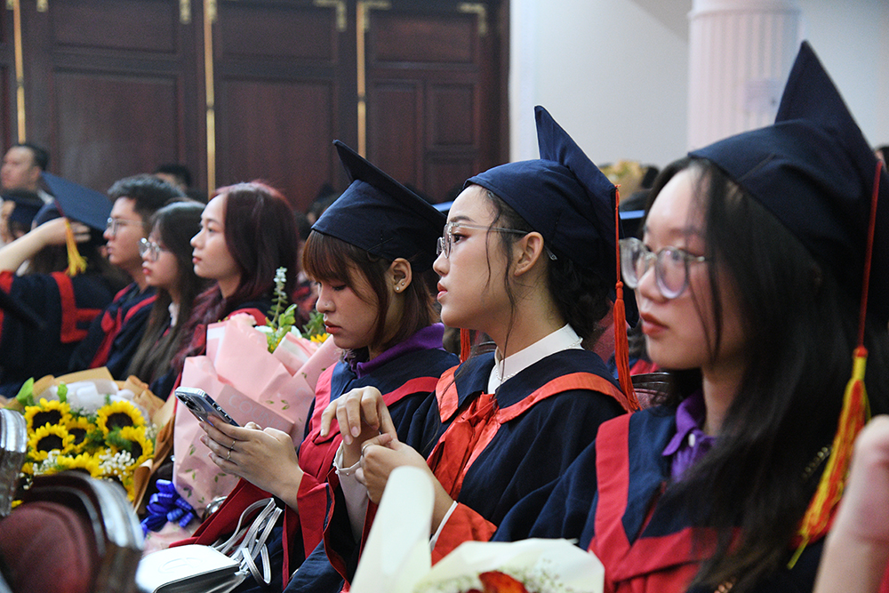 Hiệu trưởng nhắn nhủ với các Tân Cử nhân: “Bước đi đầu tiên bao giờ cũng khó khăn, nhưng các bước tiếp theo chỉ là vấn đề thời gian. Dù có bất cứ khó khăn nào, Thầy/Cô và Nhà trường sẽ luôn đồng hành và hỗ trợ cùng các em.
