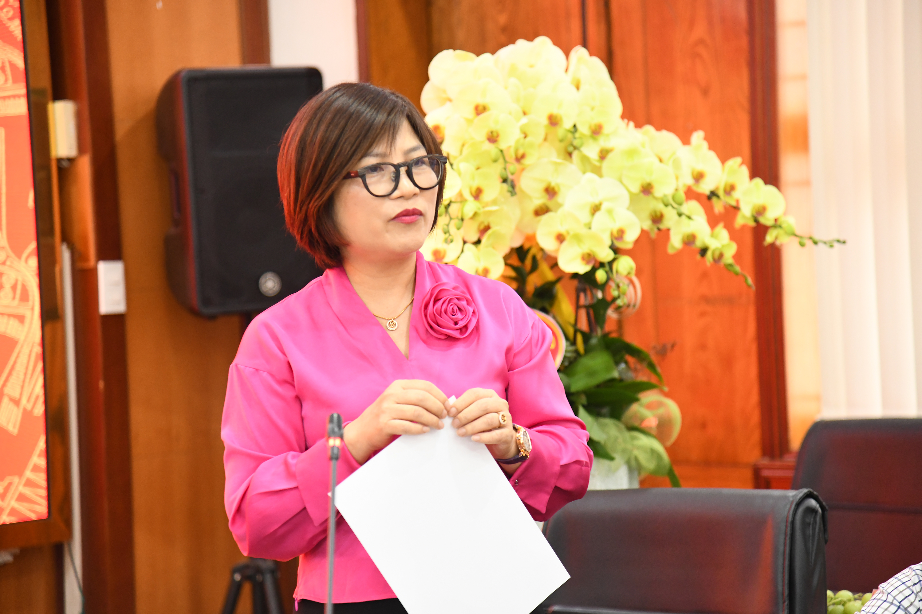 TS. Nghiêm Thị Thanh - Trưởng phòng Tổ chức - Cán bộ công bố Nghị quyết
