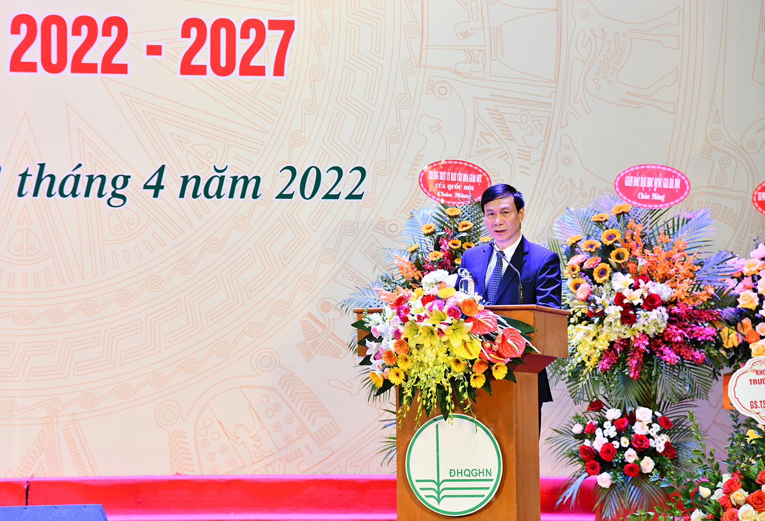 Phát biểu tại buổi Lễ, Giám đốc ĐHQGHN chúc mừng GS.TS. Nguyễn Quý Thanh đã tiếp tục nhận được tín nhiệm của Ban Thường vụ Đảng ủy, Ban Giám đốc ĐHQGHN và sự tin tưởng của toàn thể cán bộ, viên chức của Trường ĐH Giáo dục để tiếp tục giữ trọng trách dẫn dắt Trường ĐH Giáo dục trong nhiệm kỳ mới - nhiệm kỳ 2022-2027.