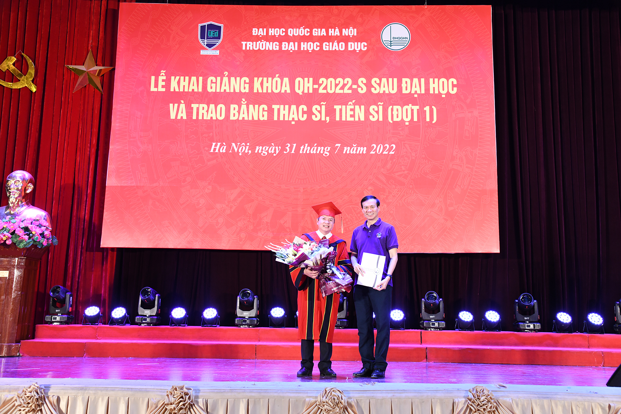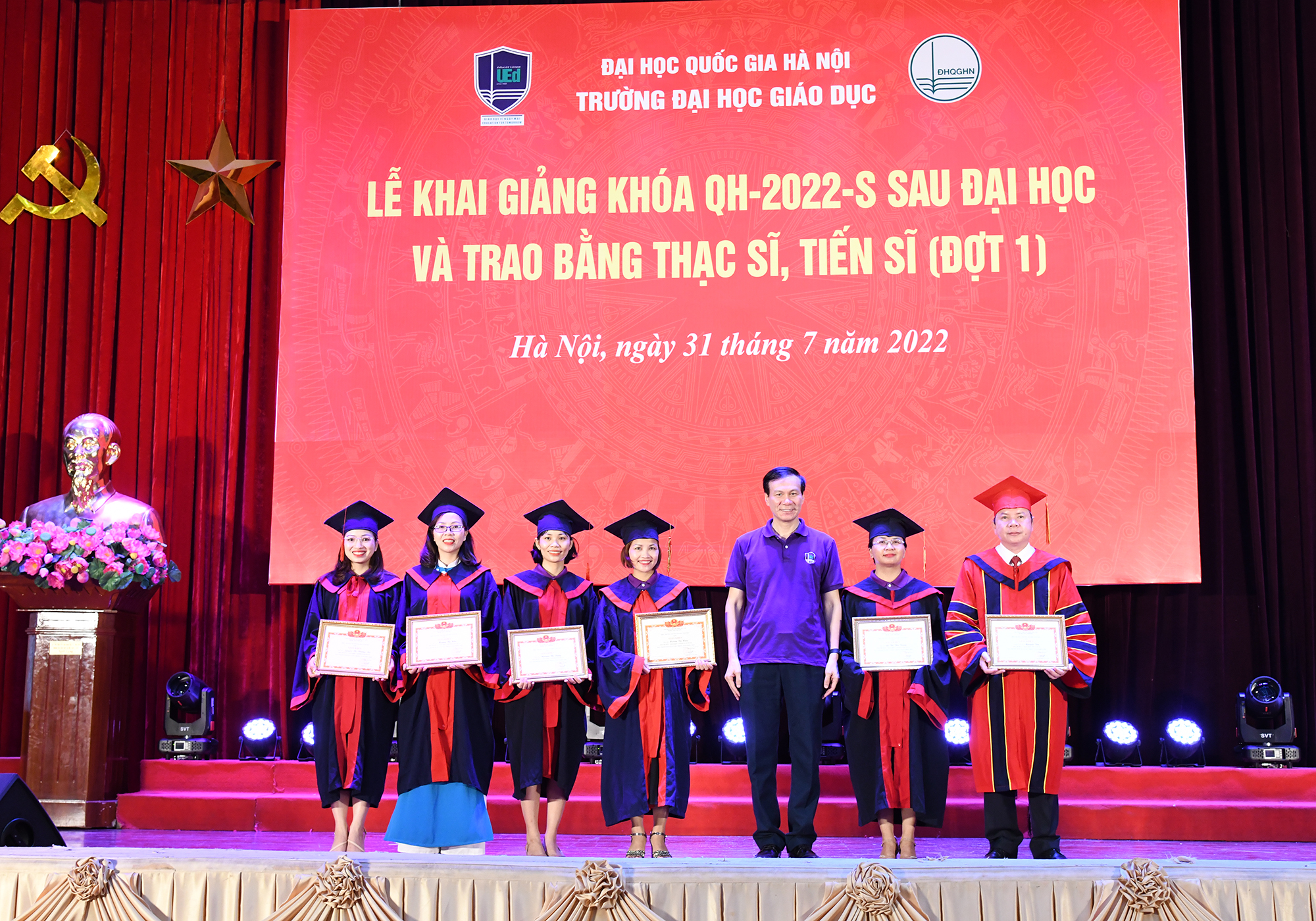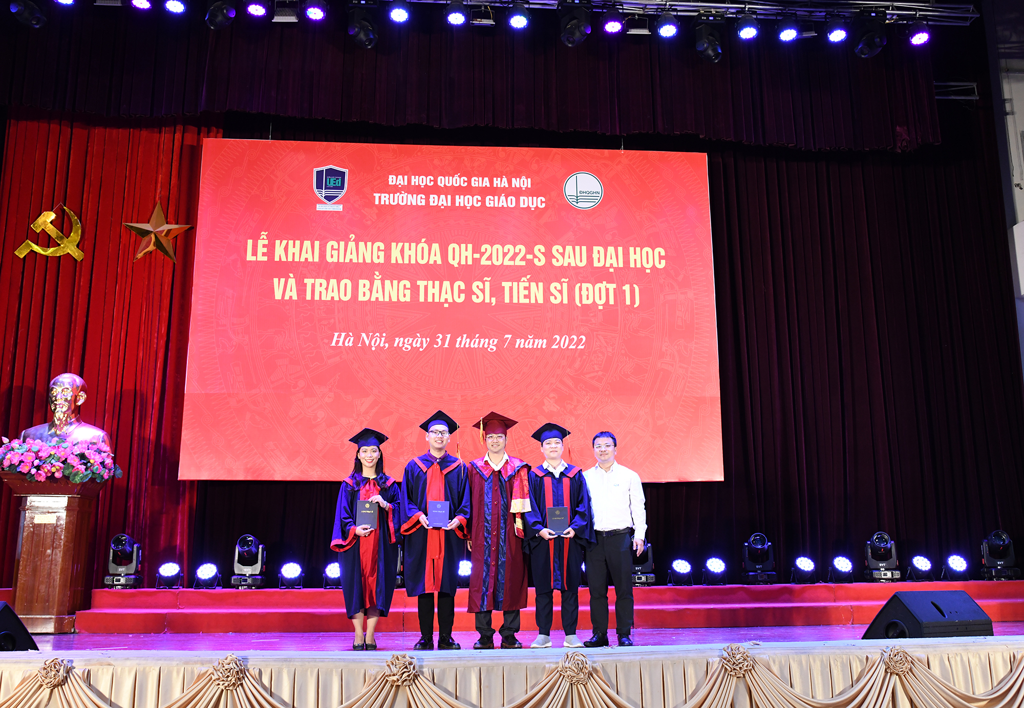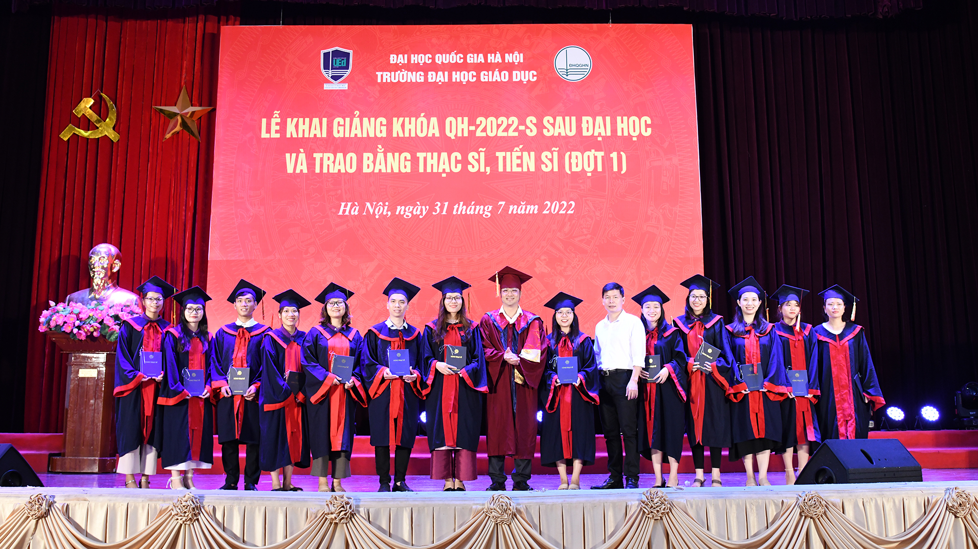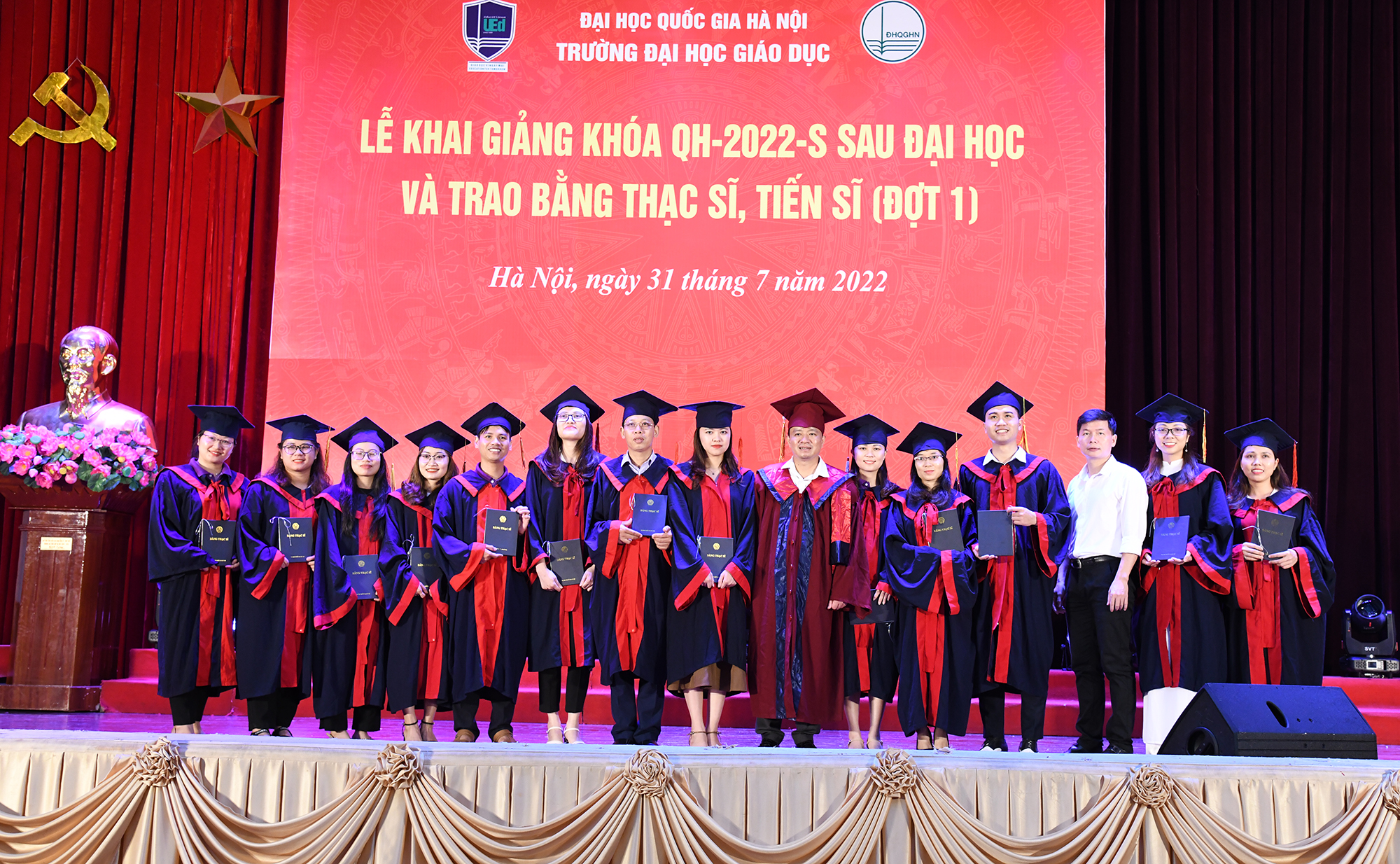 Cũng tại buổi Lễ, Trường Đại học Giáo dục đã trao bằng tốt nghiệp cho các Tân Thạc sĩ/Tiến sĩ, và trao giấy khen cho các Tân Thạc sĩ/Tiến sĩ có thành tích xuất sắc trong học tập và thành tích tốt trong công tác trường lớp 2022.