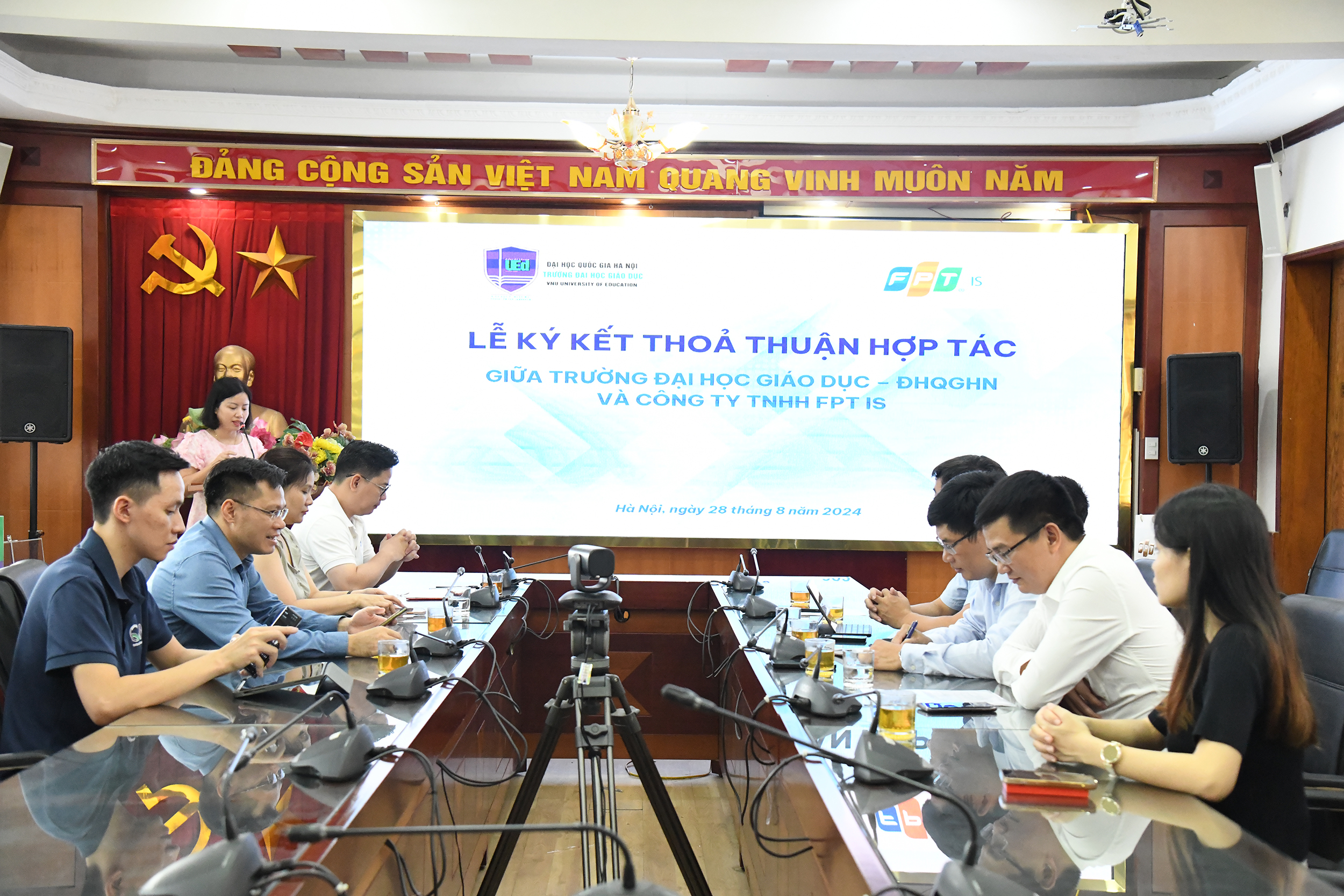 Sự kiện ký kết thỏa thuận hợp tác giữa Trường Đại học Giáo dục – Đại học Quốc gia Hà Nội và Công ty TNHH FPT IS không chỉ khẳng định sự gắn kết và quyết tâm của cả hai bên trong việc nâng cao chất lượng giáo dục trong nước mà còn mở ra nhiều cơ hội hợp tác và phát triển mới trong tương lai. Thỏa thuận này được kỳ vọng sẽ là bước đệm vững chắc để hai đơn vị tiếp tục thúc đẩy các hoạt động đổi mới sáng tạo, mang lại lợi ích thiết thực cho ngành giáo dục Việt Nam.