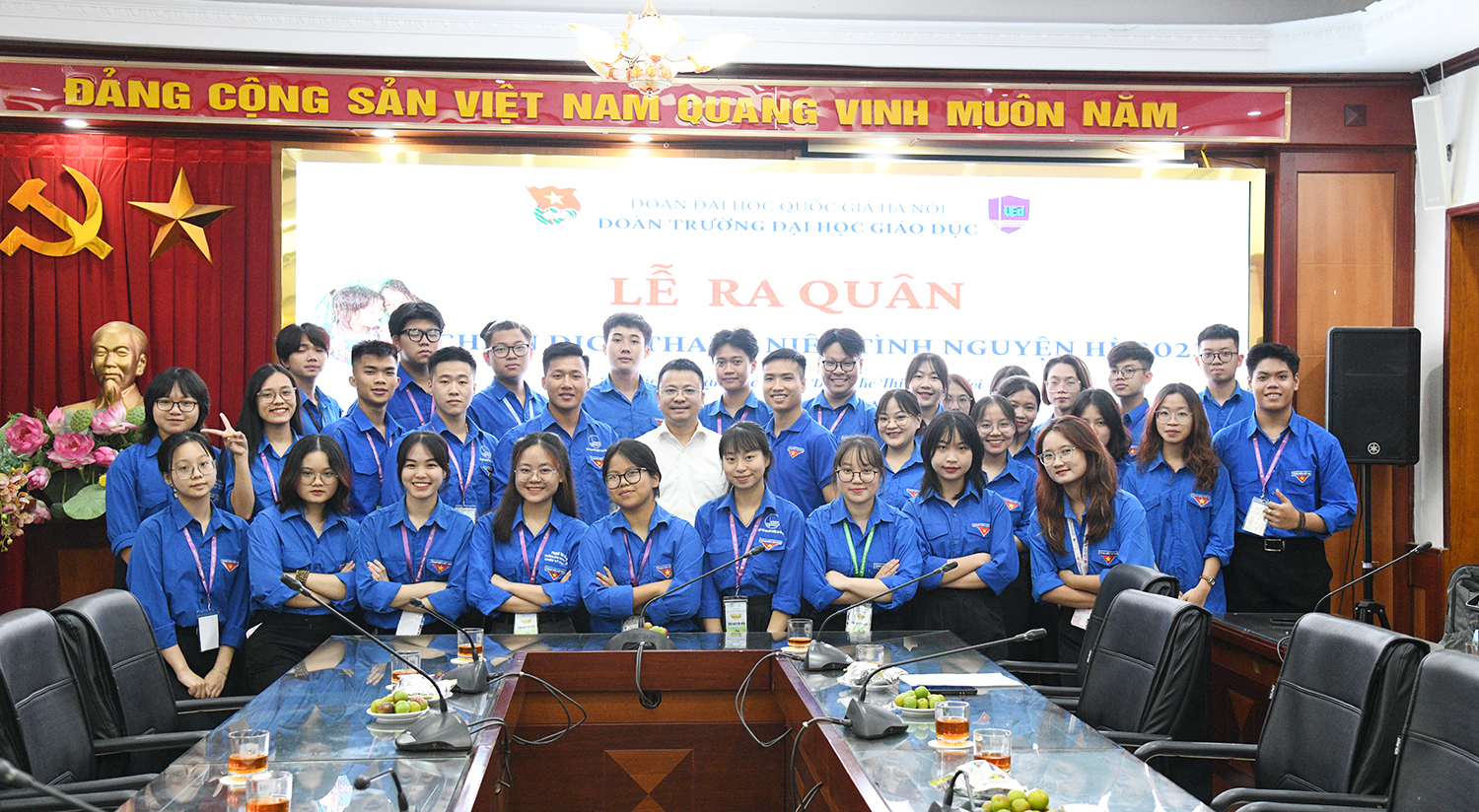 Thay mặt Ban Giám hiệu Nhà trường phát biểu tại buổi Lễ ra quân, Phó Hiệu trưởng PGS.TS. Lê Thái Hưng khẳng định, trong sự phát triển của Trường Đại học Giáo dục có sự phát triển của tổ chức Đoàn Thanh niên. Phó Hiệu trưởng Lê Thái Hưng dặn dò: “Bên cạnh sức trẻ, nhiệt huyết điều quan trọng nhất là sức khoẻ và an toàn. Để có được an toàn, các em cần tuân thủ tính kỉ luật, thận trọng và kết nối. Hãy luôn giữ vững tâm thế là sinh viên của Trường Đại học Giáo dục. Các em hãy nhớ, mỗi bước chân của sinh viên đi đến đâu thì hình ảnh và thương hiệu của Trường sẽ đi tới đó. Chúc đội trưởng giữ vững ngọn cờ lãnh đạo, chúc các đoàn tình nguyện viên hoàn thành xuất sắc các mục tiêu đề ra”.