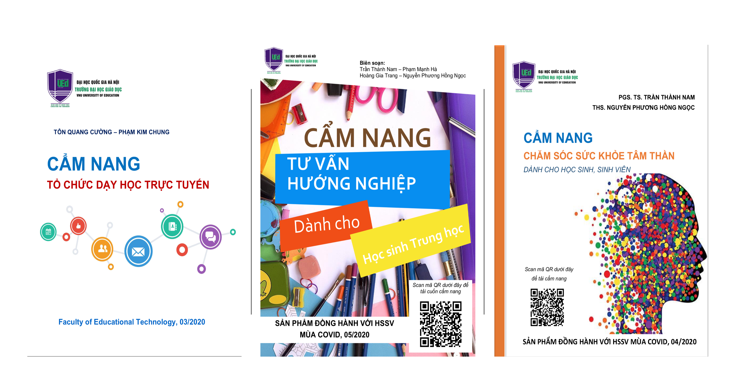II. Trước tình hình diễn biến phức tạp của dịch bệnh COVID – 19 đã làm thay đổi và ảnh hưởng rất lớn đến các cơ sở giáo dục, đòi hỏi phải điều chỉnh và triển khai một loạt các biện pháp phòng chống dịch bệnh và hỗ trợ Học sinh, Giáo viên, Cán bộ quản lý. Trường Đại học Giáo dục đã nghiên cứu và biên soạn các Tài liệu hỗ trợ công tác cho GVCN nhằm hỗ trợ việc dạy học của GV, hỗ trợ HS ứng phó, thích ứng trước những thay đổi này. Các Thầy Cô tải các tài liệu: Cẩm nang Tổ chức dạy học trực tuyến; Cẩm nang Chăm sóc sức khoẻ tâm thần; Cẩm nang Tư vấn Hướng nghiệp dành cho Học sinh THPT theo link download: https://education.vnu.edu.vn/index.php/WebControl/viewpage/198