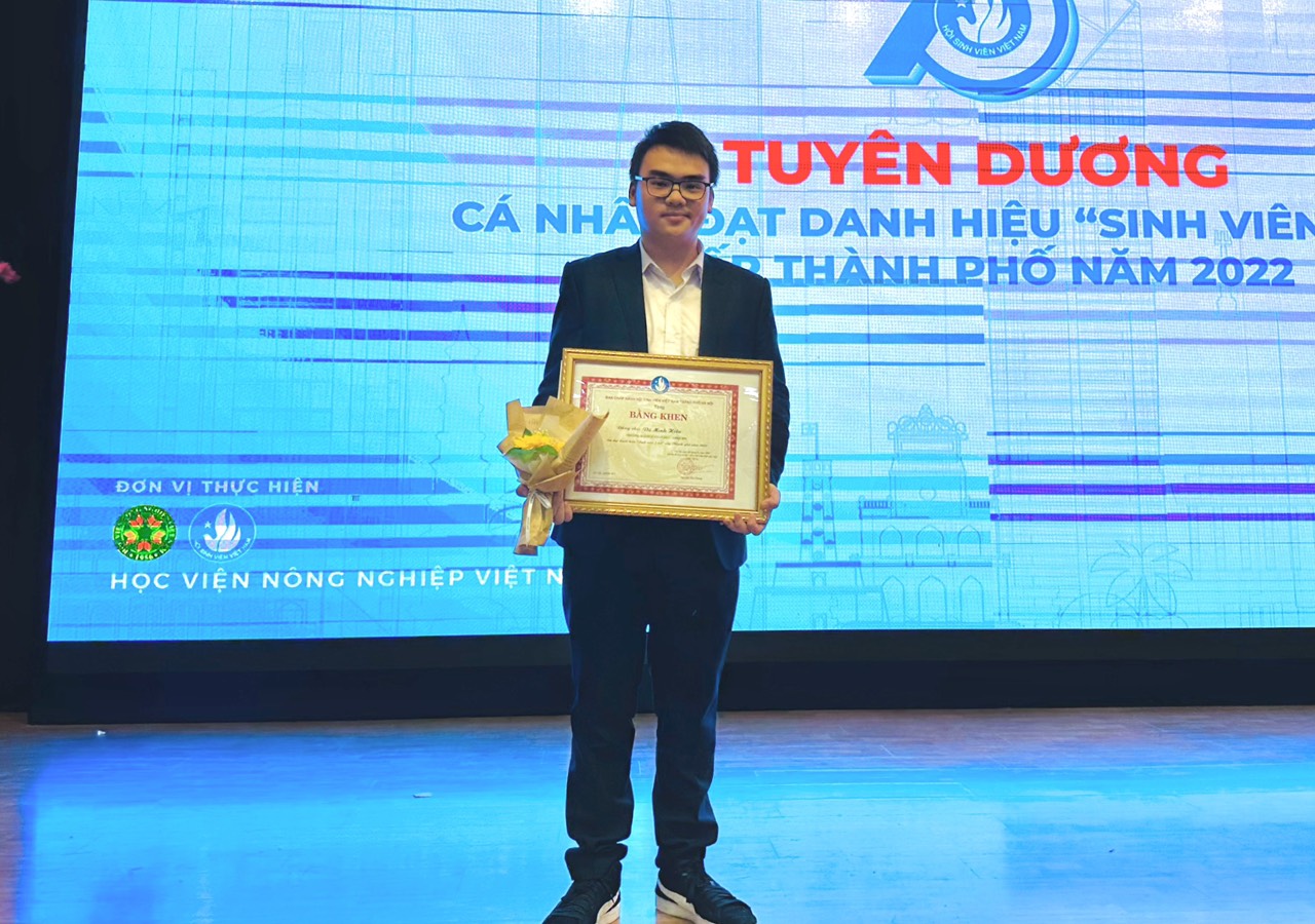 Vũ Minh Hiếu nhận giải thưởng "Sinh viên 5 tốt" cấp thành phố năm 2022. Ảnh: NVCC.