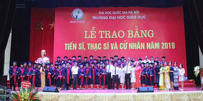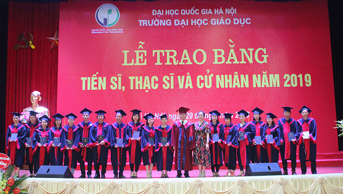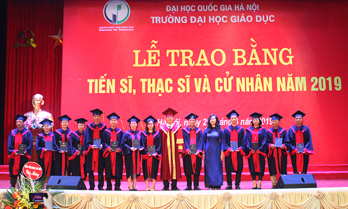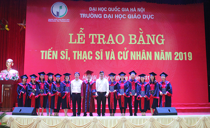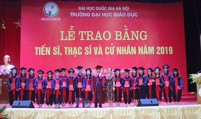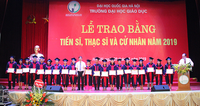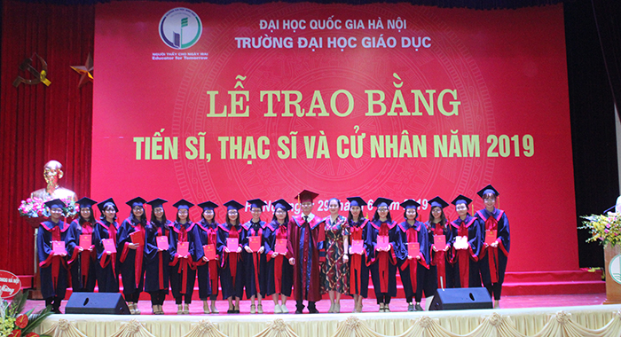 Tại buổi lễ tốt nghiệp, Ban Giám hiệu Trường ĐH Giáo dục đã trao bằng tốt nghiệp cho 184 cử nhân, 248 thạc sĩ và 2 tiến sĩ tốt nghiệp trong đợt 1 năm 2019.