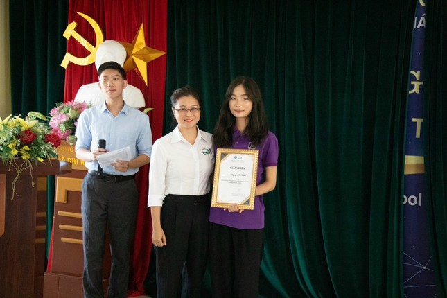 Thắm vinh dự được Hiệu trưởng Trường Đại học Giáo dục trao thưởng cho các Thủ khoa đầu vào.