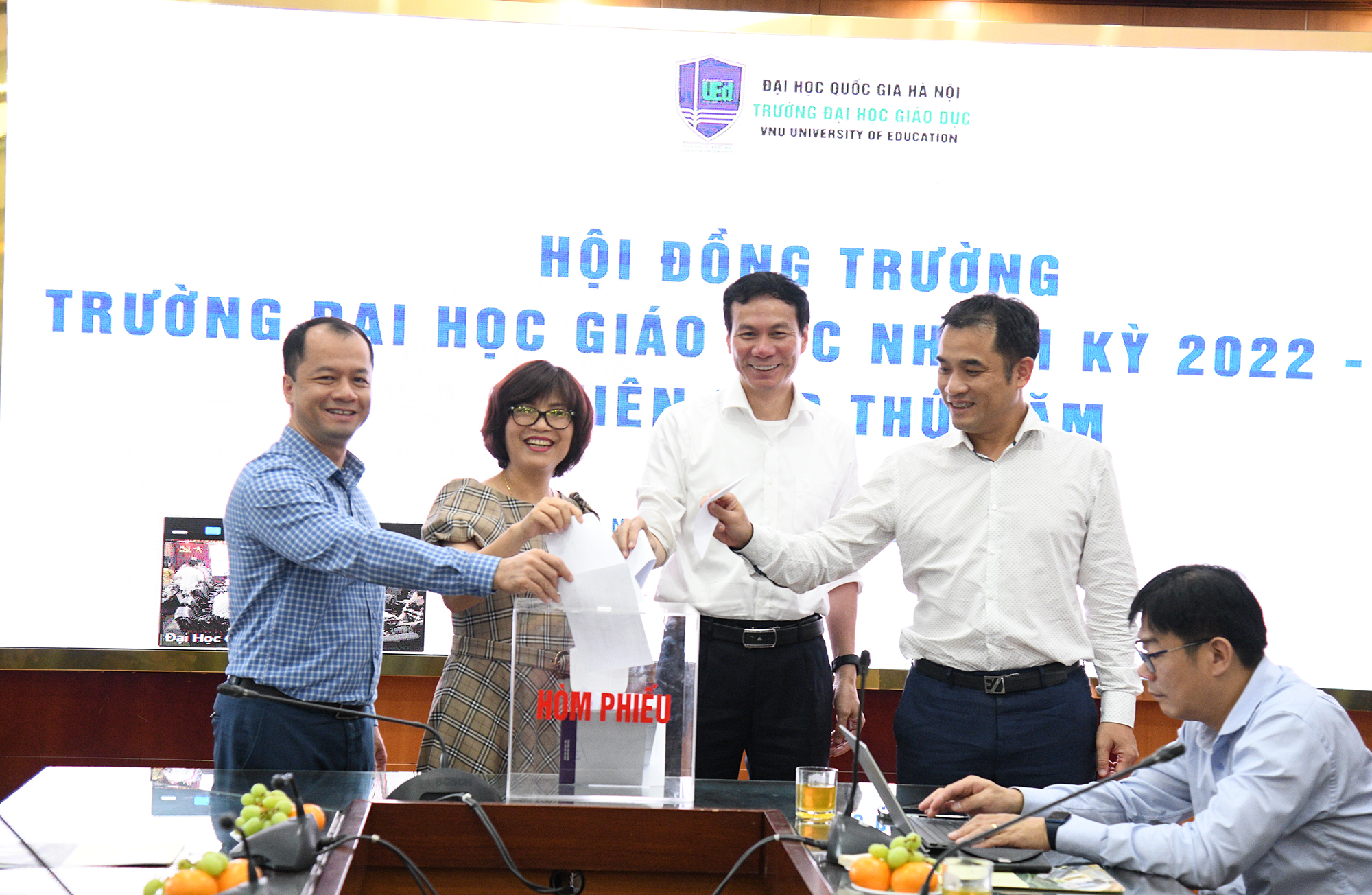 Các thành viên Hội đồng trường Đại học Giáo dục bỏ phếu tín nhiệm tại phiên họp