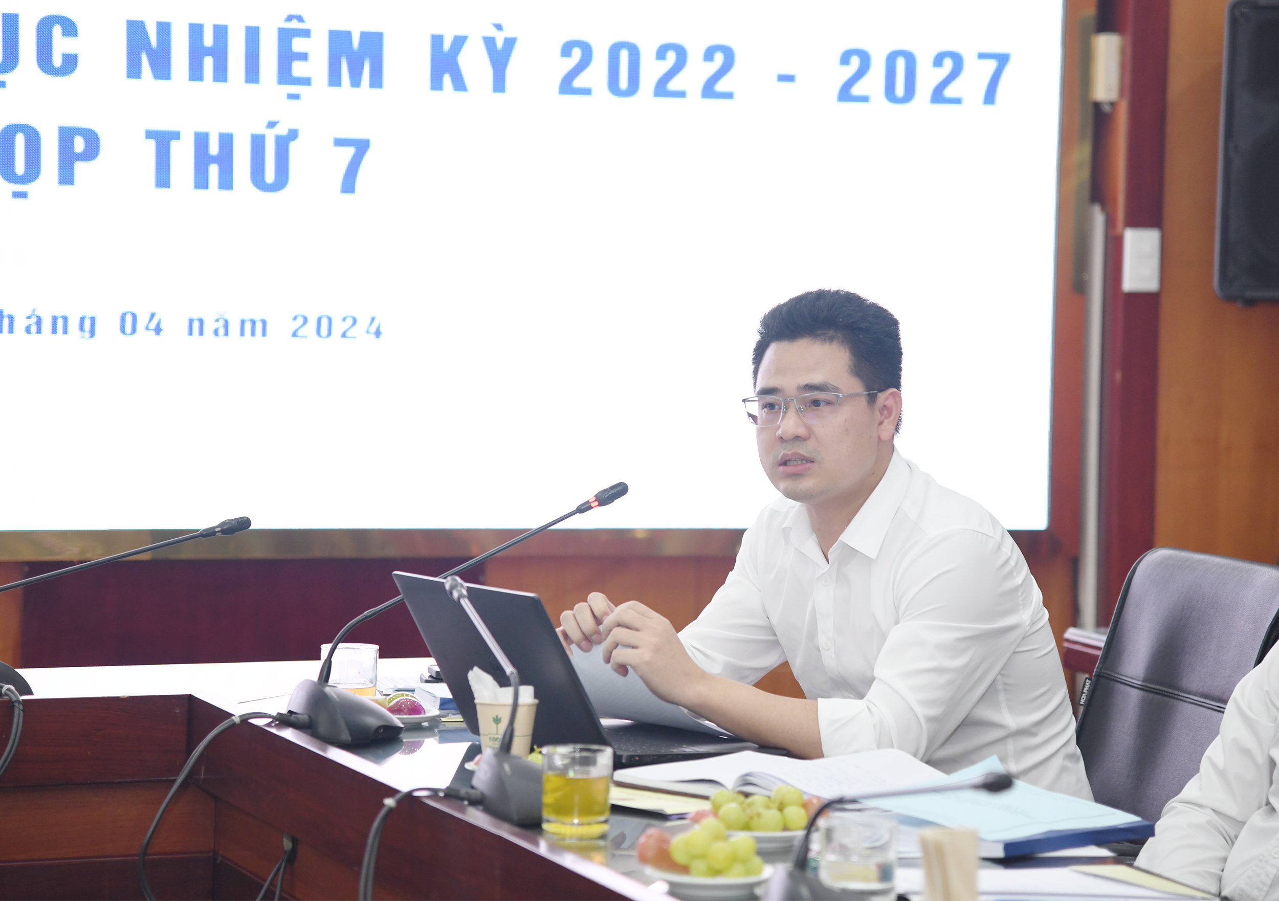 Đại diện lãnh đạo ĐHQGHN, Phó Trưởng Ban Tổ chức Cán bộ ThS. Phạm Vương tham dự phiên họp.