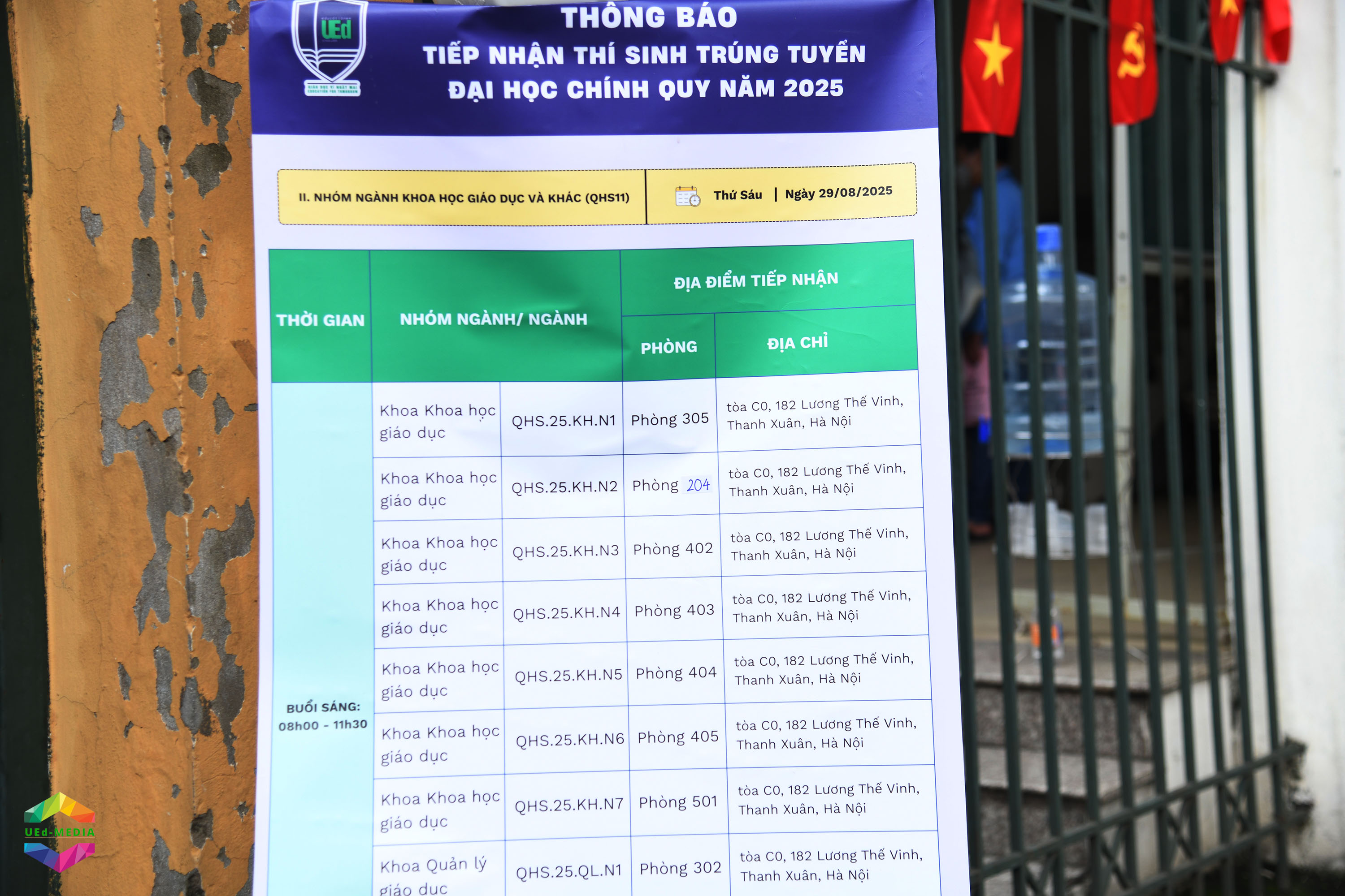 Để tạo điều kiện thuận lợi nhất cho tân sinh viên cũng như phụ huynh khi đến làm thủ tục nhập học, Trường Đại học Giáo dục đã huy động đông đảo lực lượng cán bộ chia thành các phòng tương ứng với từng mã ngành giúp các tân sinh viên và phụ huynh làm thủ tục nhanh chóng và thuận tiện.
